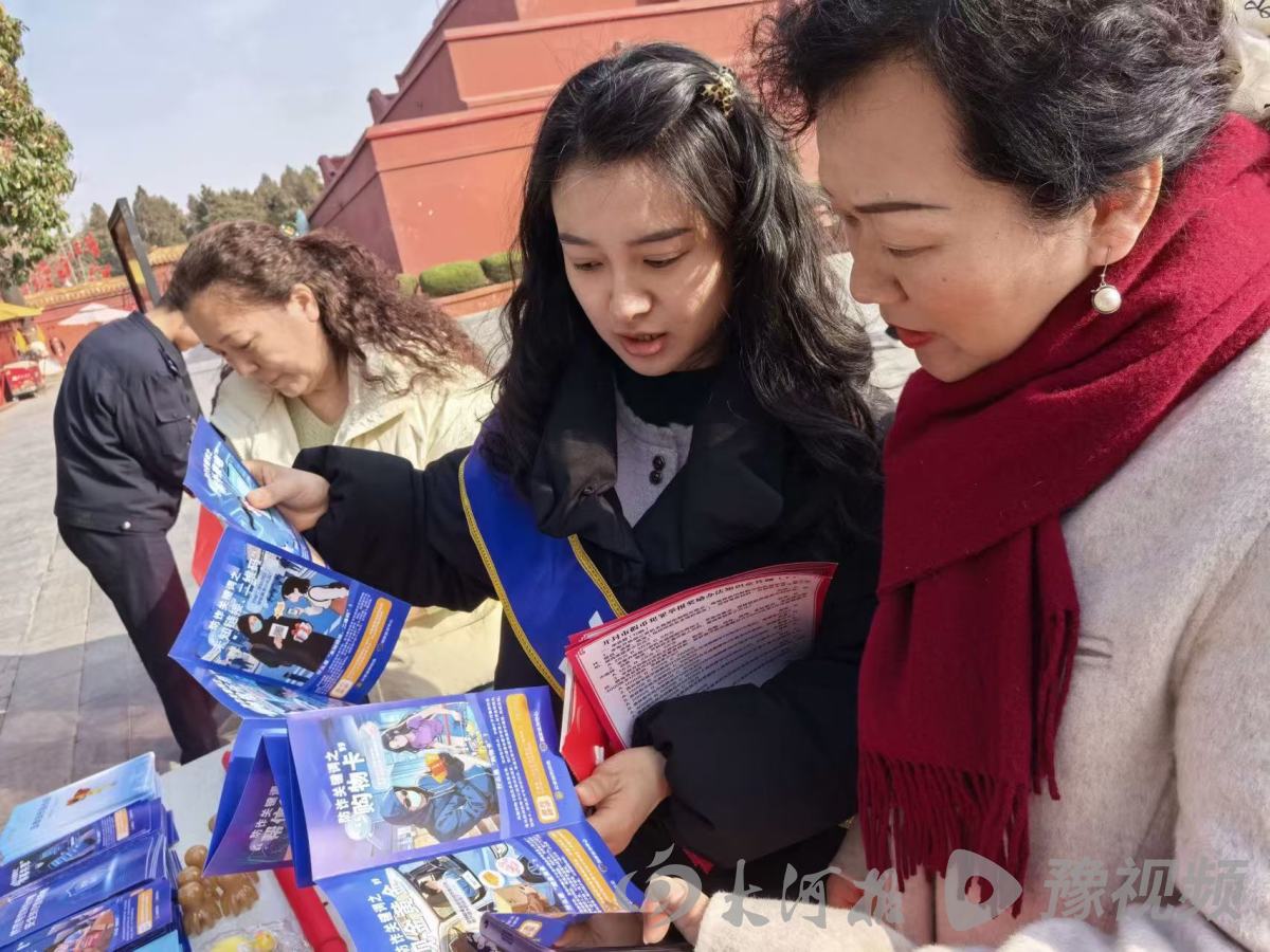 在开封市公安局经侦支队、龙亭分局民警现场专业指导下,宣传活动有序开展。工作人员结合近期高发的电信网络诈骗典型案例,手持反诈案例资料,亲身向现场游客以及市民细致宣讲识别技巧和防范要点,用真实案例敲响安全警钟。