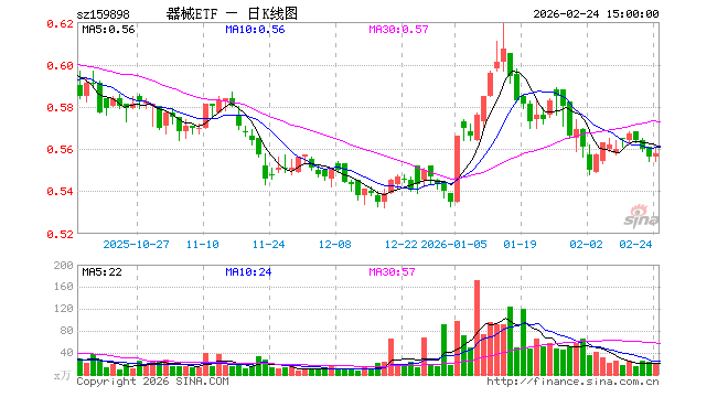 2月24日,医疗器械指数ETF(159898)涨0.36%,成交额1110.54万元。当日份额增加300.00万份,最新份额为14.20亿份,近20个交易日份额减少1.04亿份。最新资产净值计算值为7.92亿元。