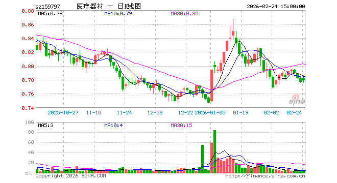 2月24日,医疗器械ETF汇添富(159797)涨0.39%,成交额442.59万元。当日份额增加200.00万份,最新份额为4.27亿份,近20个交易日份额增加600.00万份。最新资产净值计算值为3.33亿元。