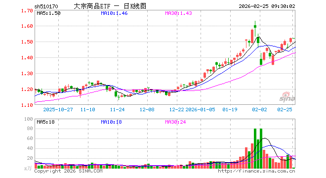 大宗商品ETF(510170)业绩比较基准为上证大宗商品股票指数,管理人为国联安基金管理有限公司,基金经理为黄欣,成立(2010-11-26)以来回报为87.23%,近一个月回报为4.36%。