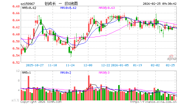 2月25日,创业板成长ETF(159967)开盘涨0.00%,报0.621元。创业板成长ETF(159967)重仓股方面,中际旭创开盘跌0.72%,新易盛跌0.55%,宁德时代涨0.48%,阳光电源跌0.67%,胜宏科技涨0.13%,东方财富涨0.27%,先导智能涨0.00%,天孚通信涨0.37%,长芯博创涨3.58%,同花顺涨0.05%。