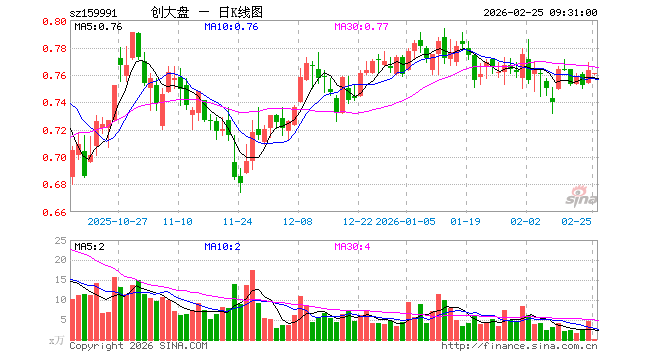 2月25日,创大盘ETF(159991)开盘跌0.39%,报0.760元。创大盘ETF(159991)重仓股方面,宁德时代开盘涨0.48%,中际旭创跌0.72%,新易盛跌0.55%,东方财富涨0.27%,阳光电源跌0.67%,胜宏科技涨0.13%,汇川技术跌0.09%,迈瑞医疗涨0.00%,天孚通信涨0.37%,亿纬锂能涨0.03%。