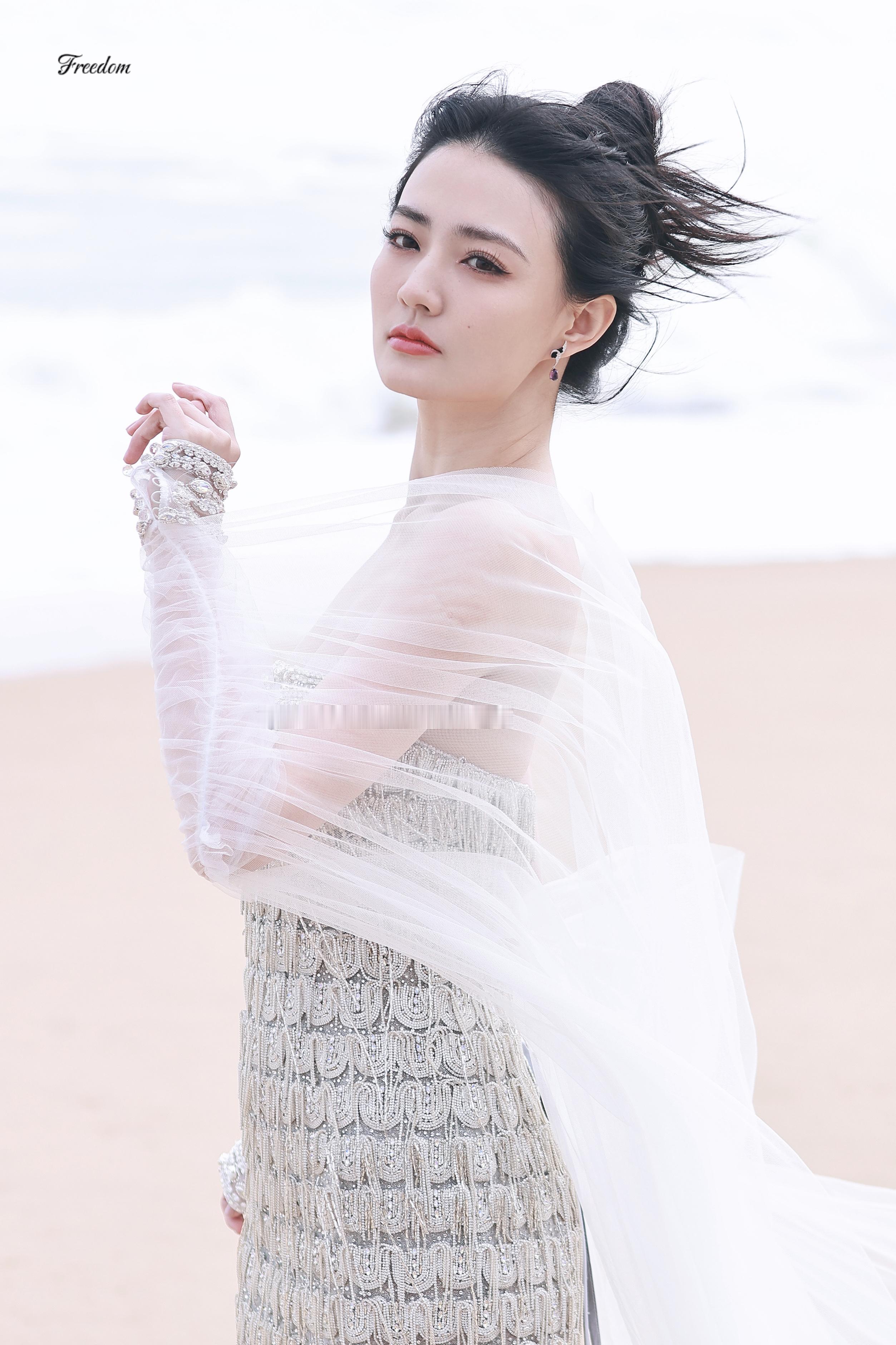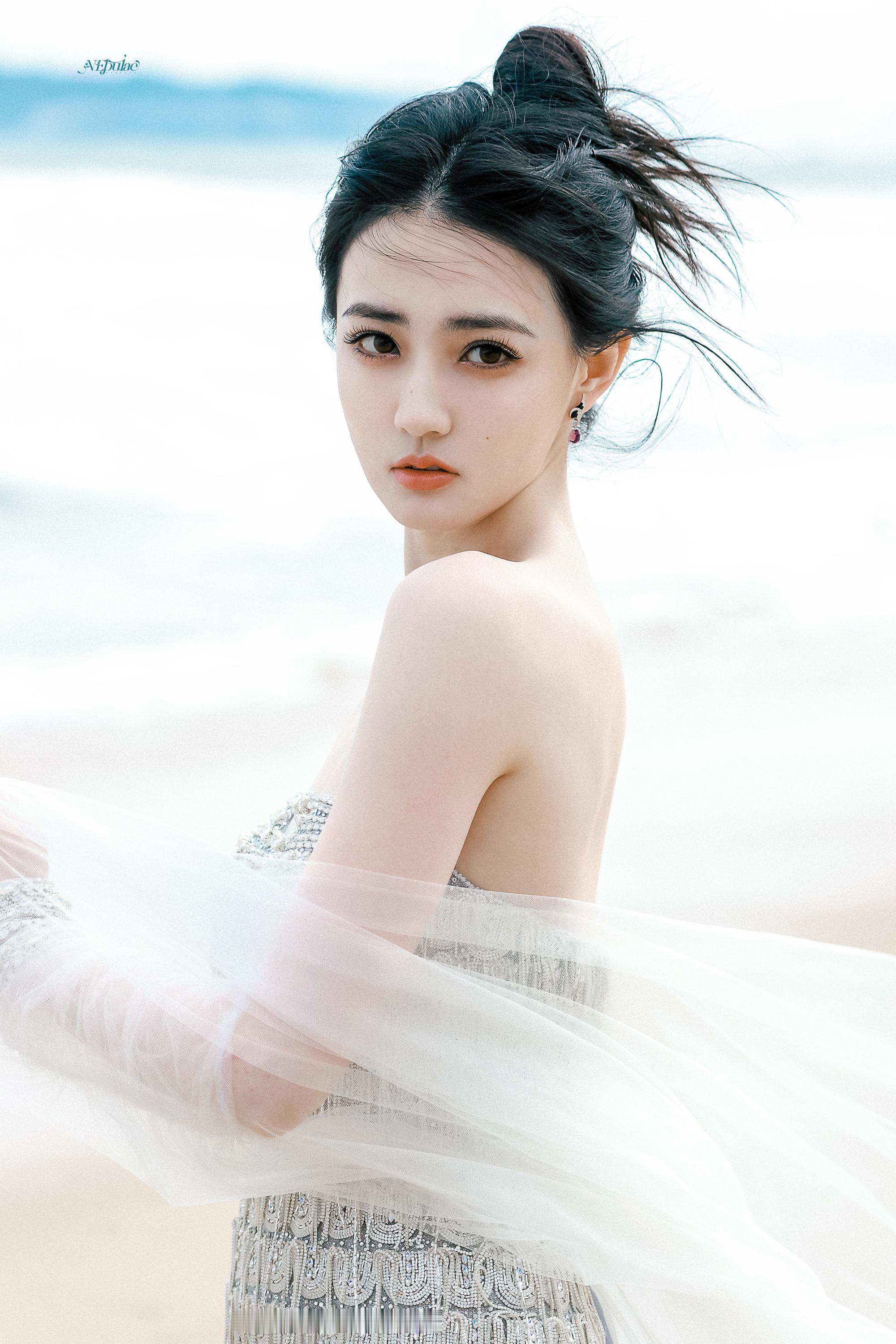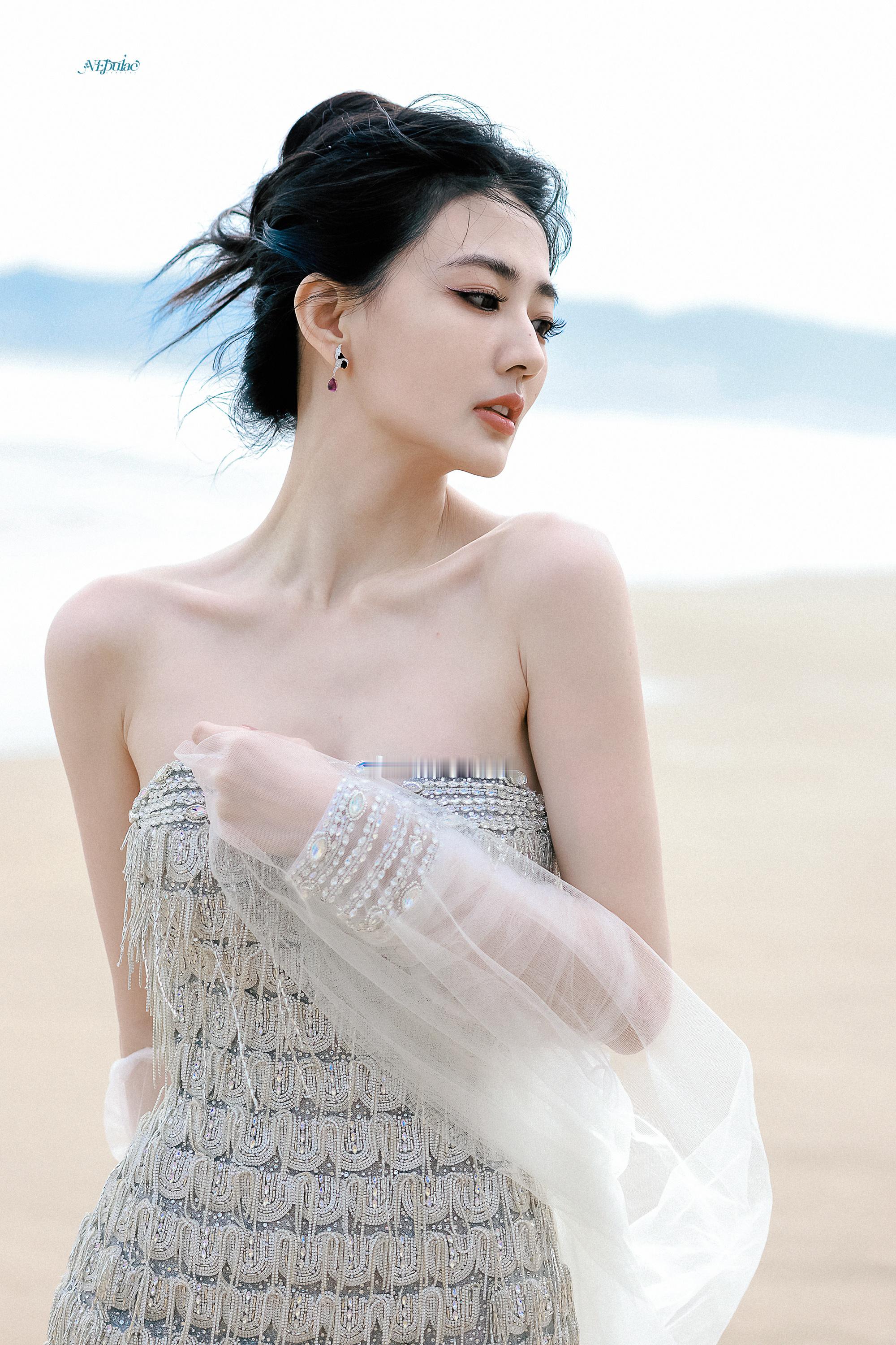 徐璐 海风漫过脚踝,白纱与碎钻在浪尖轻颤。眼底盛着整片海的温柔,发丝被风揉成心动的形状。