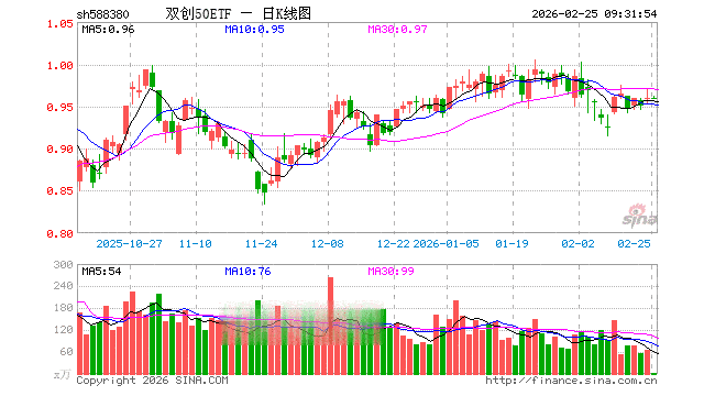 2月25日,双创50ETF(588380)开盘涨0.00%,报0.960元。双创50ETF(588380)重仓股方面,中际旭创开盘跌0.72%,新易盛跌0.55%,宁德时代涨0.48%,寒武纪涨0.79%,阳光电源跌0.67%,中芯国际涨1.02%,海光信息涨0.75%,胜宏科技涨0.13%,汇川技术跌0.09%,澜起科技涨0.01%。