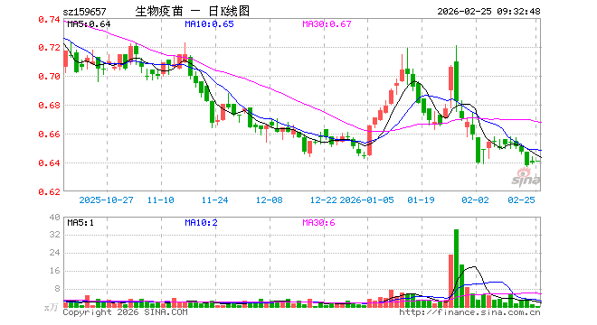 2月25日,疫苗ETF鹏华(159657)开盘涨0.16%,报0.641元。疫苗ETF鹏华(159657)重仓股方面,复星医药开盘涨0.26%,长春高新涨0.01%,智飞生物跌0.23%,沃森生物涨0.33%,万泰生物涨0.02%,华兰生物跌0.06%,昭衍新药跌0.49%,丽珠集团跌0.03%,辽宁成大涨0.25%,康泰生物涨0.00%。