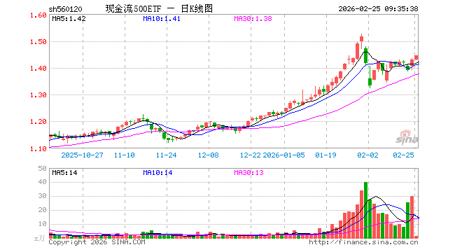 现金流500ETF(560120)业绩比较基准为中证500自由现金流指数收益率,管理人为华夏基金管理有限公司,基金经理为杨斯琪,成立(2025-07-23)以来回报为42.75%,近一个月回报为1.41%。