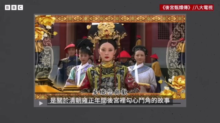 英国广播公司(BBC)称,76集的《甄嬛传》于2011年首播,改编自作家流潋紫的同名小说,讲述清朝雍正年间女主角甄嬛在选秀入宫后历经斗争、最终成为皇太后的故事。2022年由于疫情影响,许多台湾民众春节期间选择待在家里,再加上电视台24小时不间断播放《甄嬛传》,促使一边追剧、一边在网络聊天室留言成为集体活动,甚至在台湾演变为每年的春节传统。如今每到春节,岛内剧迷在聊天室准时集结,从“胖橘”聊到“三阿哥又长高了”,一年比一年热闹。