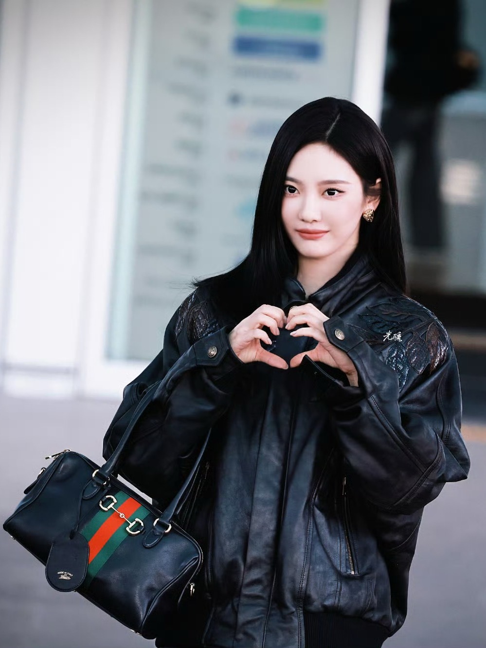 宁艺卓 GUCCI宁艺卓|出发米兰时装周造型 :一身黑色系造型,整体干净利落,恰