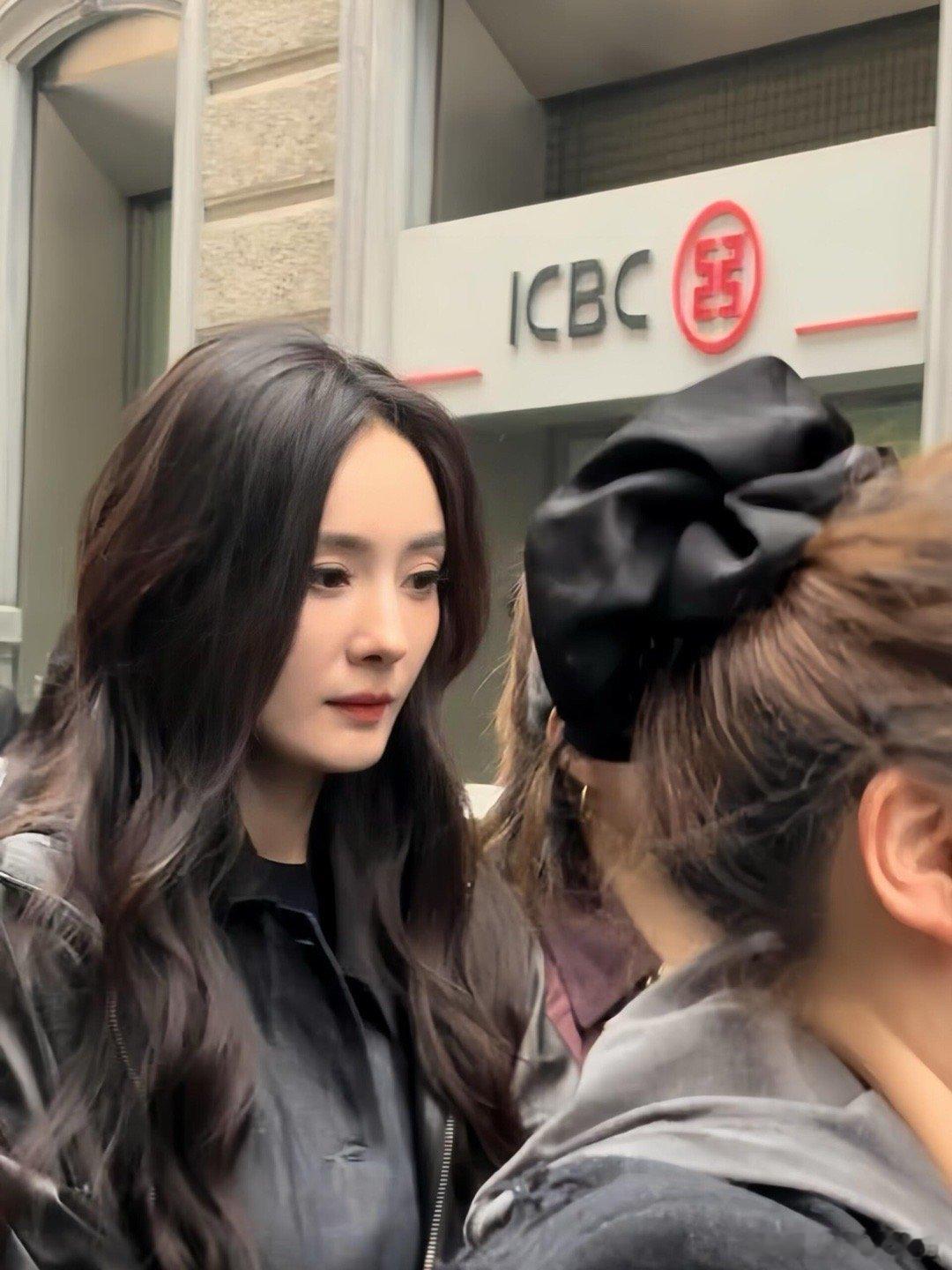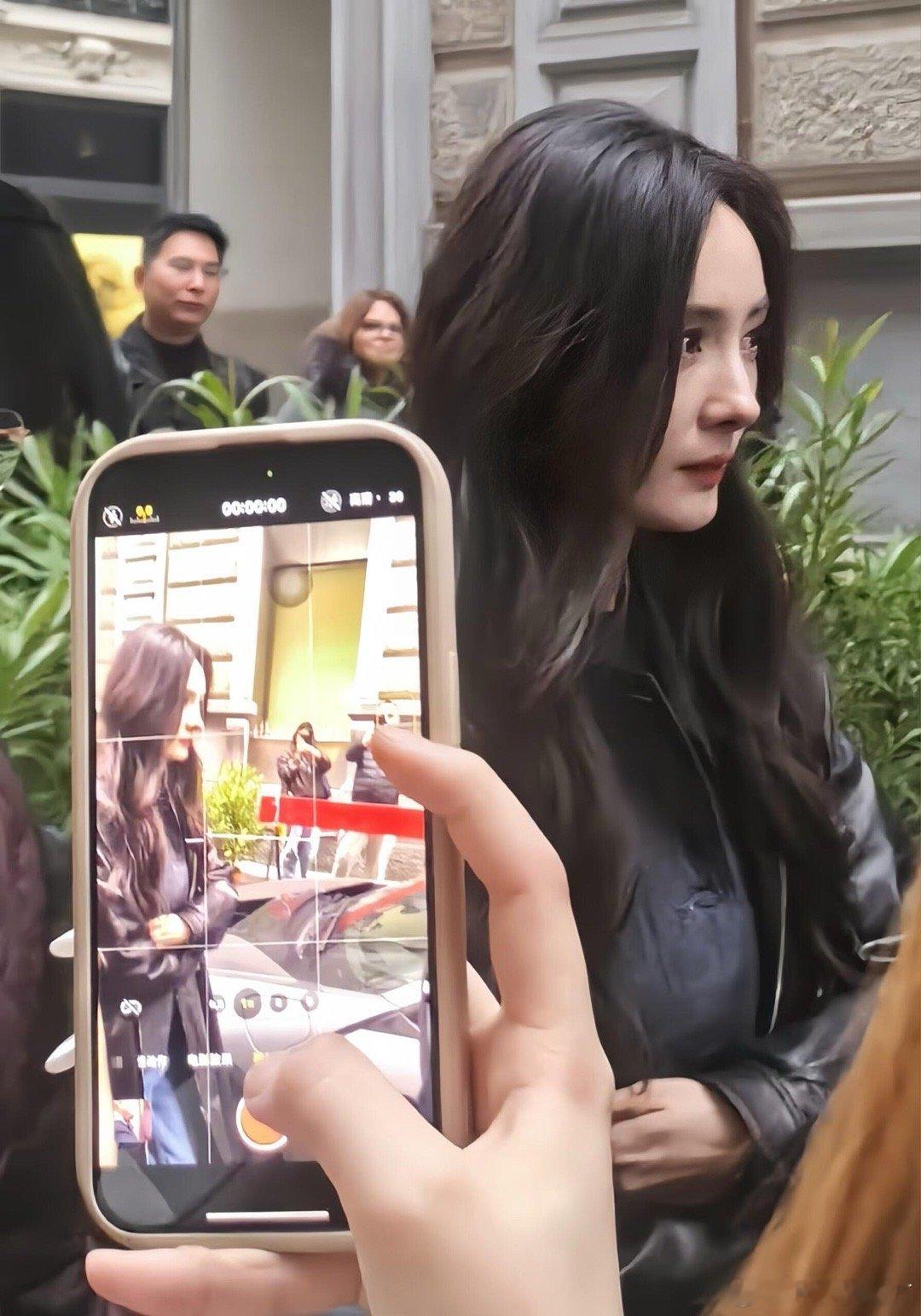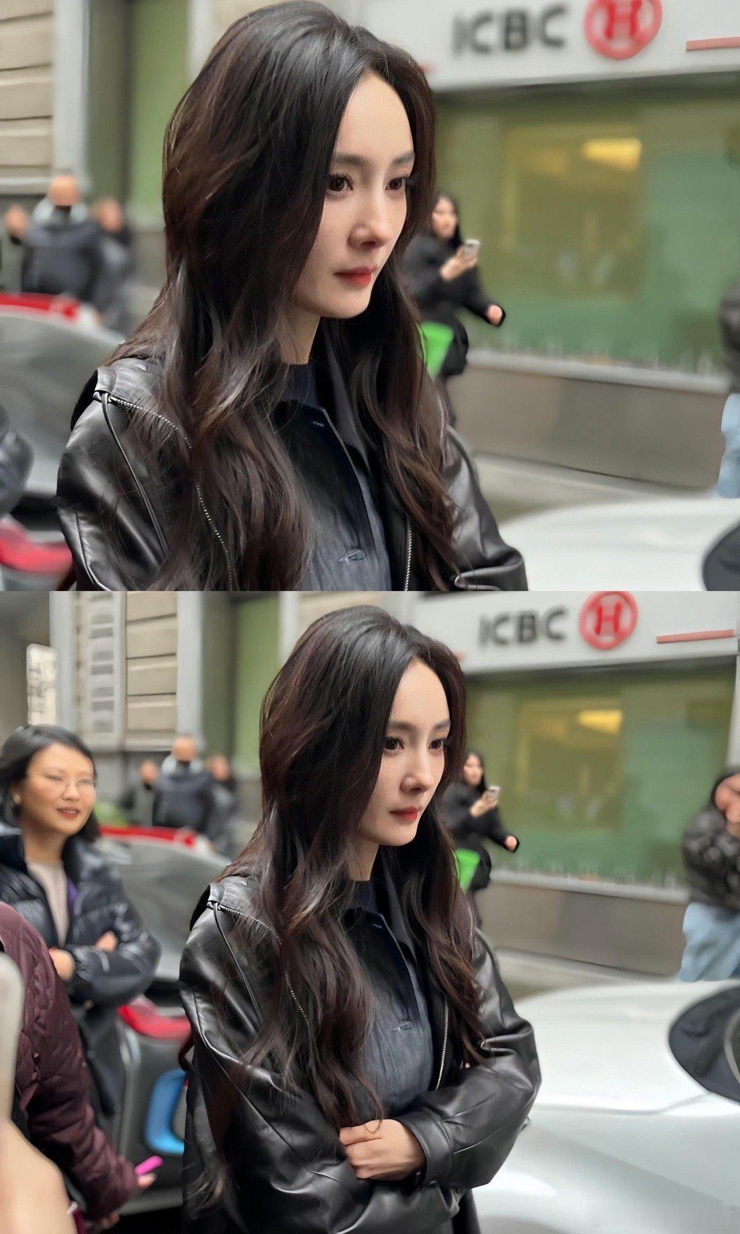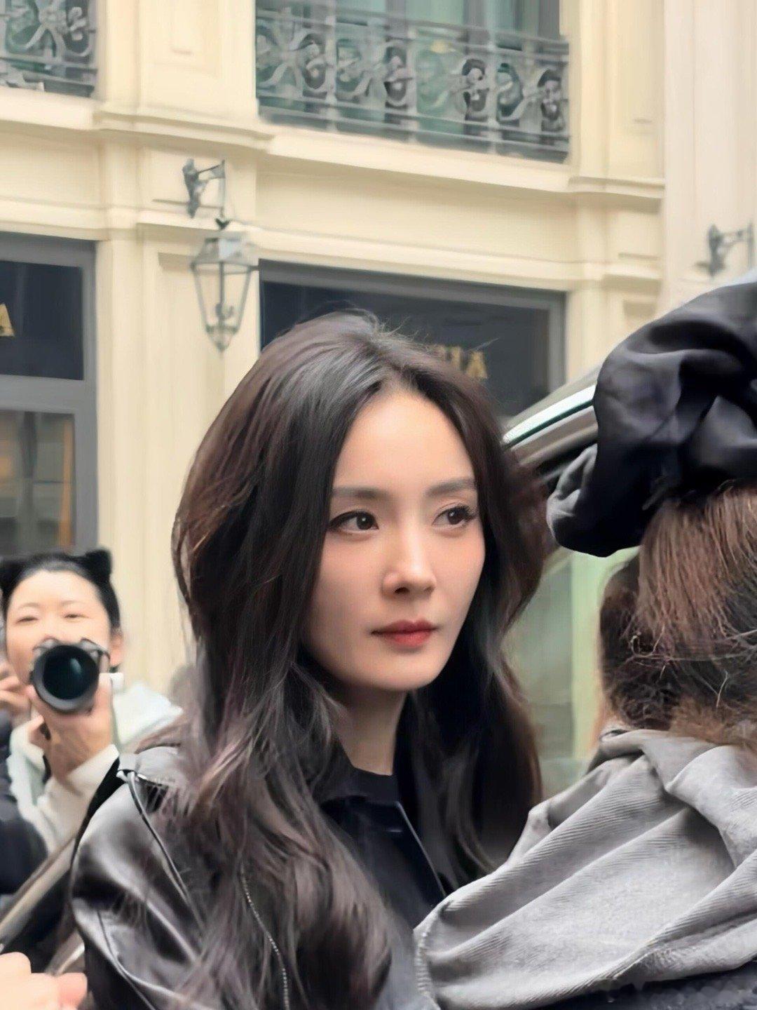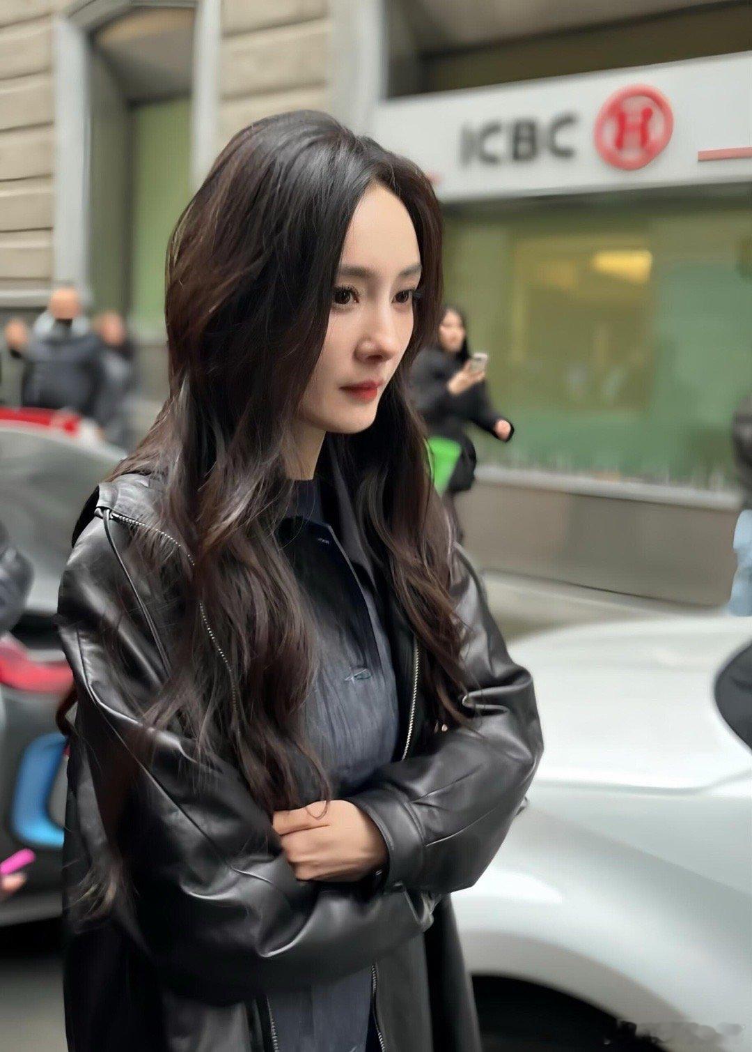 杨幂米兰生图路透美得我有点心事了!精致的小脸配皮衣衬条纹衫+牛仔裤,都是基础款但姐就是能驾驭出一股松弛的大气感