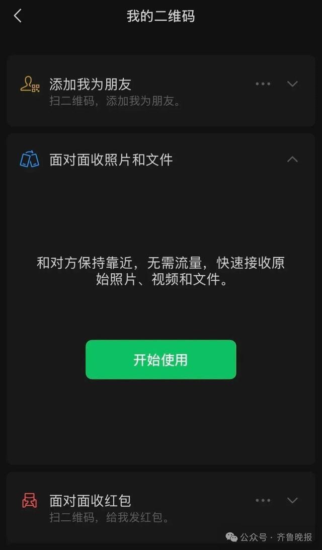 2月24日,微信员工@客村小蒋发文称,微信最近更新“面对面收照片和文件”的功能,在“扫一扫”的“我的二维码”入口中可以体验。无需流量,不用添加好友,和对方设备保持靠近即可接收原始照片、视频和文件。