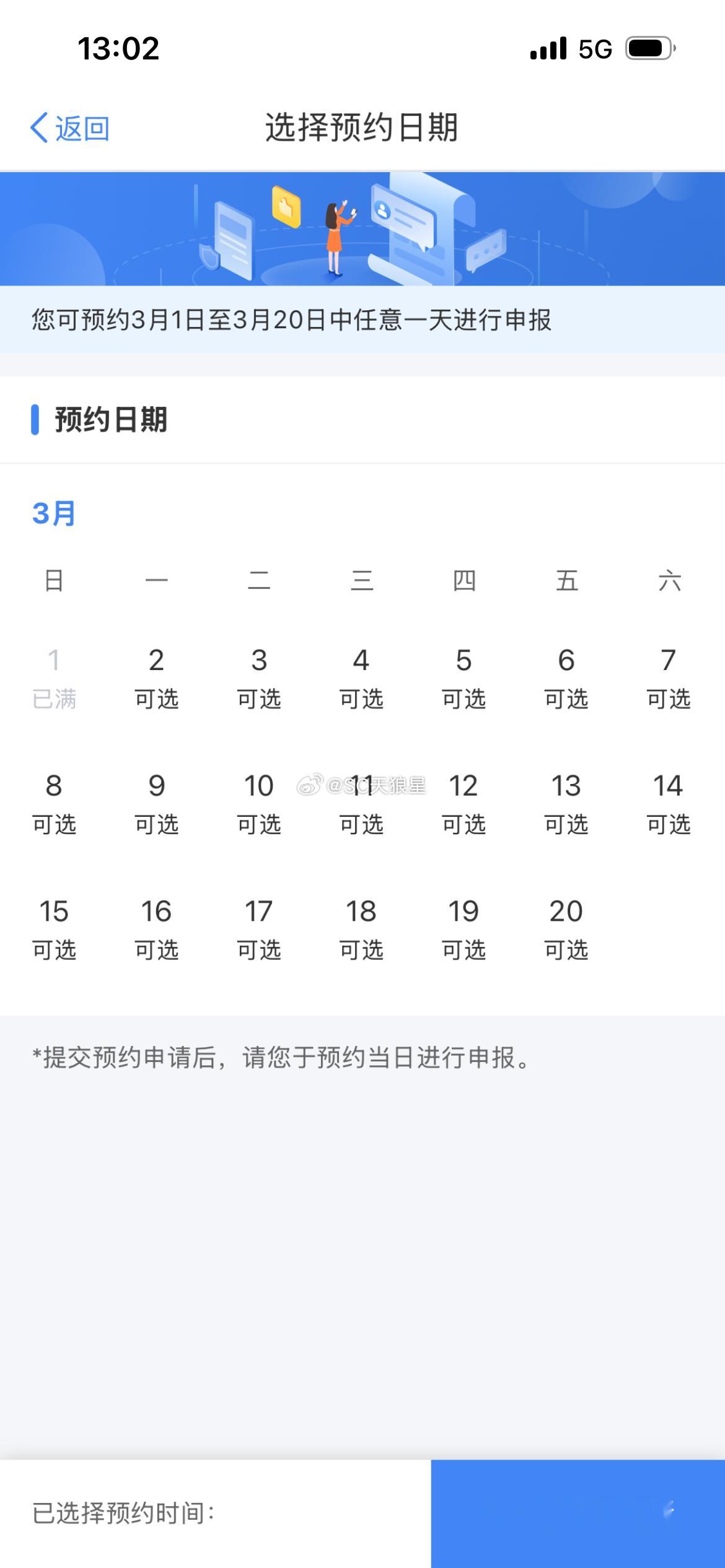 个人所得税年度汇算,可以在app上预约时间了。3月1日的预约已满,我约了个2号的