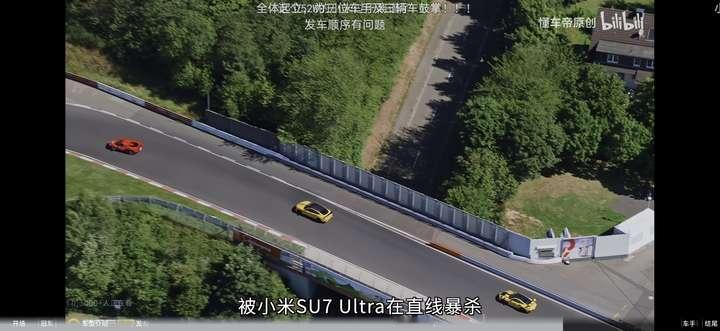 先说小米,即便是没有挖孔,没选10万的赛道套件、车重2吨多,甚至车胎还是265+305的小米SU7 Ultra,也能在和保时捷GT3 RS、法拉利296 GTB比赛里面拿圈速第三、冲线第二,后者一个600多万,一个400多万,小米就是最最便宜的50多万版本(懂车帝加了半热熔胎)。