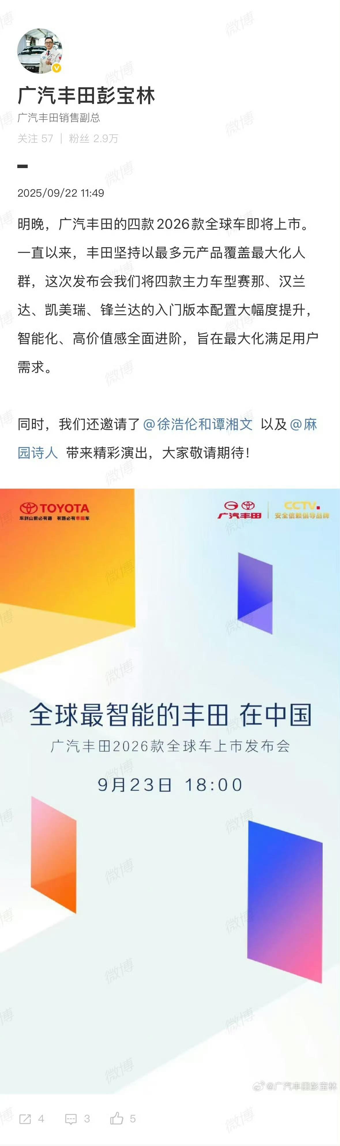 丰田这是油电两手抓啊? 也意识到了,在中国市场必须玩智能化,这次好几款油车都要改