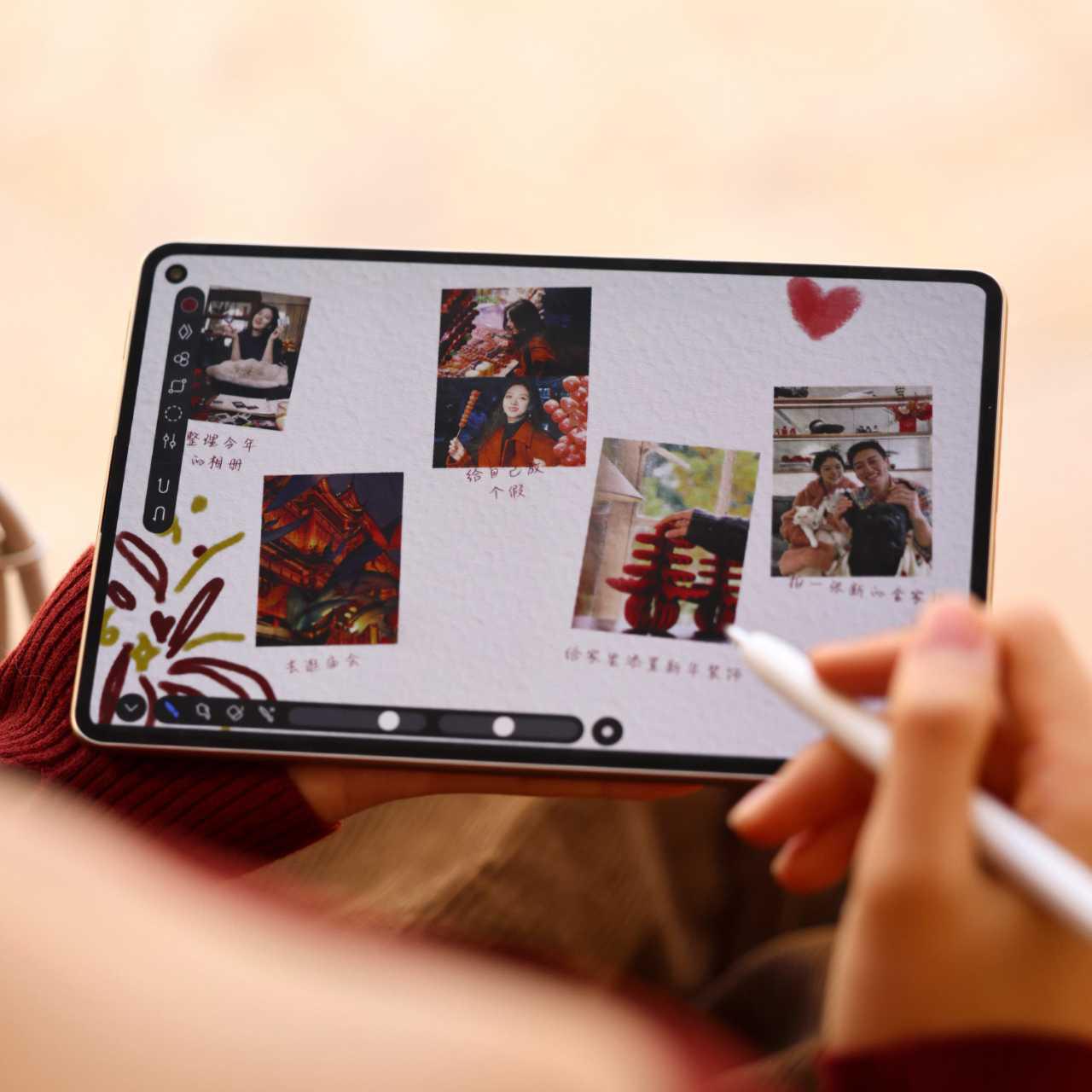 另外,出门走亲戚,还有华为MatePad mini,小巧便携的同时,还能插SIM卡,完全不用担心出门外出没有网络;再配合手写笔,还能给照片画点马年小元素,写几句当下的心情,留住最纯粹的年味瞬间。所以,有些陪伴,其实不用刻意表达。能被记录下来,能被分享出去,还能在以后某天再翻出来看一眼,本身就是最好的礼物。