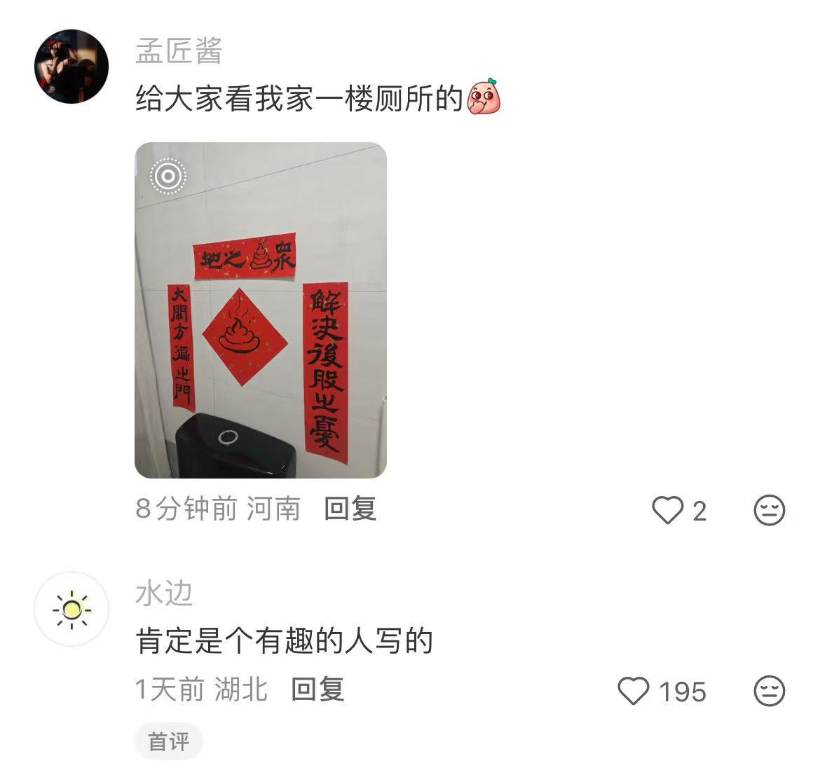 这个公厕的春联还挺有写实