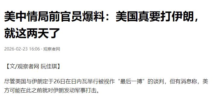 打伊朗前,美国找到中方,特朗普知道:他错一步,中方就不战而胜 2月24日,美国务院正式向中国发出军控问题磋商邀约,明明处在对伊朗动手的关键时刻,前中情局官员更是爆料最快在两天内实现对伊朗的军事打击。 一边是航母战机压境,大战一触即发,一边是放下身段主动敲开中国军控大门,特朗普到底想干什么呢?面对美国的要求,我们真的要同意吗? 特朗普这步棋,满脑子都是算计,根本不是真心想推进军控,更不是突然重视中国的立场,而是把中国当成了他对伊动武的“绊脚石”,想先稳住我们,怕我们坏了他的好事。 大家可以看看当下的局势,美军在伊朗周边的部署已经到了临战状态,“福特”号和“林肯”号两艘航母夹击伊朗,11架F-22隐形战机部署到以色列,约旦的空军基地也集结了大量美军战机和无人机,这架势,说是随时能开火一点都不夸张。 前中情局官员约翰·基里亚库早就爆料,美国最快在2月23日、24日就可能对伊朗动手,还说特朗普给伊朗的10天期限就是“战术迷惑”,目的就是让伊朗措手不及。 而且特朗普过去一年把美军参谋长联席会议的成员全换了,提拔的都是绝对忠于自己的人,就是为了确保对伊动武能顺利推进,不出现内部反对的声音。甚至有消息说,特朗普高调宣布要公开UFO相关文件,都是为了转移公众注意力,掩盖他即将对伊动武的决策。 既然都准备动手了,为什么还要主动找中国谈军控?答案很简单,特朗普心里清楚,中国的立场,直接决定了他对伊动武的成本和成败。 大家都知道,中国是联合国安理会常任理事国,在中东地区有不小的影响力,而且我们和伊朗一直保持着正常的合作关系,更重要的是,中国一贯反对单边动武,主张通过外交途径解决国际争端。 特朗普最怕的是什么?就是他一旦对伊朗动手,中国站出来明确反对,联合国际社会发声,甚至在经济上对伊朗提供合理支持。 要知道,美军目前的兵力,顶多只能维持4到5天的高强度空袭,一旦陷入持久战,再加上中国的反对和牵制,美国不仅很难达成打击目标,还会陷入中东的泥潭,消耗大量的人力物力财力。 到时候,美国在中东的影响力会大幅下降,而中国则能凭借客观公正的立场,在国际格局中占据更有利的位置,这就是特朗普所说的“错一步,中方就不战而胜”。 所以,美国主动发出军控磋商邀约,本质上就是一场“交易”,甚至是一种“捆绑”。他们想通过谈军控,换取中国在伊朗问题上的中立,让我们不插手、不反对,好让他们能毫无顾忌地对伊动武。 而且还有一层心思,就是借着军控谈判,指责中国的核力量发展,试图遏制中国的国防实力,毕竟美俄之间的《新削减战略武器条约》已经失效,美国想拉中国加入军控框架,本质上是为自己扩充核武库找借口。 那么问题来了,面对这样的邀约,我们真的要同意吗?答案其实很明确:可以谈,但绝对不能被美国绑架,更不能为了谈军控,就放弃我们在伊朗问题上的原则立场。 中国外交部发言人毛宁已经明确表态,中方密切关注美伊局势,希望各方保持克制,通过对话解决分歧,而且美国作为拥有庞大核武库的国家,理应履行特殊优先的核裁军责任,而不是反过来要求中国。 说白了,军控问题有自己的规则和框架,应该在平等互利、相互尊重的基础上谈,不能和伊朗问题捆绑在一起。 我们反对美国对伊动武,不是偏袒伊朗,而是因为单边动武会加剧中东地区的动荡,不符合任何一方的利益,也会影响全球的能源安全和经济稳定。 而军控磋商,只有在不附加任何政治条件、不损害中国核心利益的前提下,才有谈的必要。 特朗普的算计虽然精明,但他显然低估了中国的底线和智慧。他以为放下身段谈军控,就能换取中国的中立,就能顺利拿下伊朗,但他忘了,中国从来不会被任何国家的威逼利诱所左右,我们始终坚持独立自主的和平外交政策,维护国际公平正义。 一旦特朗普贸然对伊动武,错估了中国的立场,那么他面临的,必然是多方牵制和失败的结局,而中国,也会在这场博弈中,凭借正确的立场和策略,实现自身的利益,这就是“不战而胜”的底气所在。 天南地北大拜年