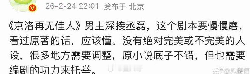 丞磊对接回应京洛再无佳人啊这,想看丞磊和王楚然二搭的观众要失望了吧。没想到丞磊对接回应了《京洛再无佳人》。就是说这部剧的剧情和人设还挺带感的,如果能看到丞磊和王楚然二搭,会激动的跳起来啊~丞磊暂无接触京洛再无佳人