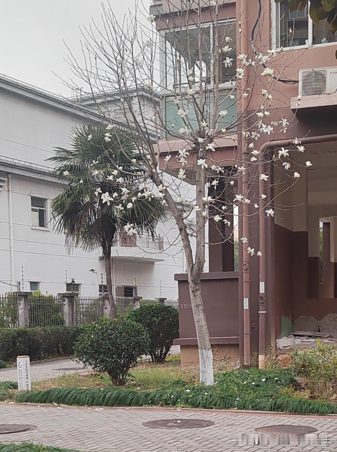 上网查查,此花属落叶小乔木,花色有白玉兰、紫玉兰,花期在早春,常见被用作园林绿化树种,住宅小区四周的围栏,充当绿植种植于绿化环境中。