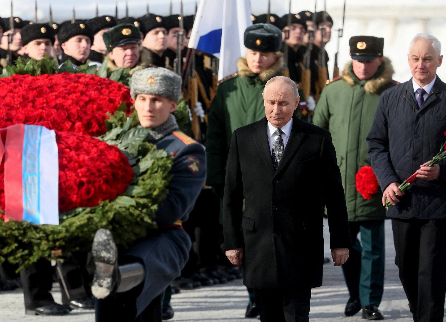 当地时间2026年2月23日,俄罗斯莫斯科,纪念“祖国保卫者日”,俄总统普京向无名烈士墓献花。图/ICphoto