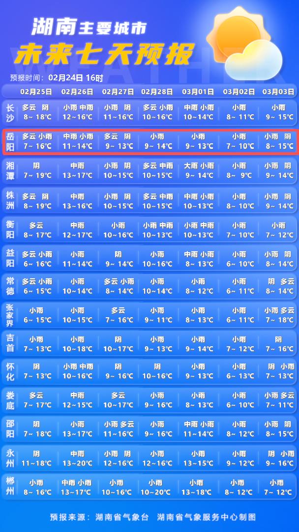 湖南省气象台预计,25日至26日,省内有一次中到大雨过程,其中湘南局地暴雨,并伴有7~9级雷暴大风、小冰雹等强对流天气。27日省内阴天为主,部分地区有小雨。25日至26日,怀化中南部、邵阳西部及娄底西部有雷雨大风气象灾害风险;永州中北部、衡阳南部、郴州北部及株洲南部有暴雨气象灾害风险。气温较常年同期偏低,26日至28日有分股冷空气渗透南下。