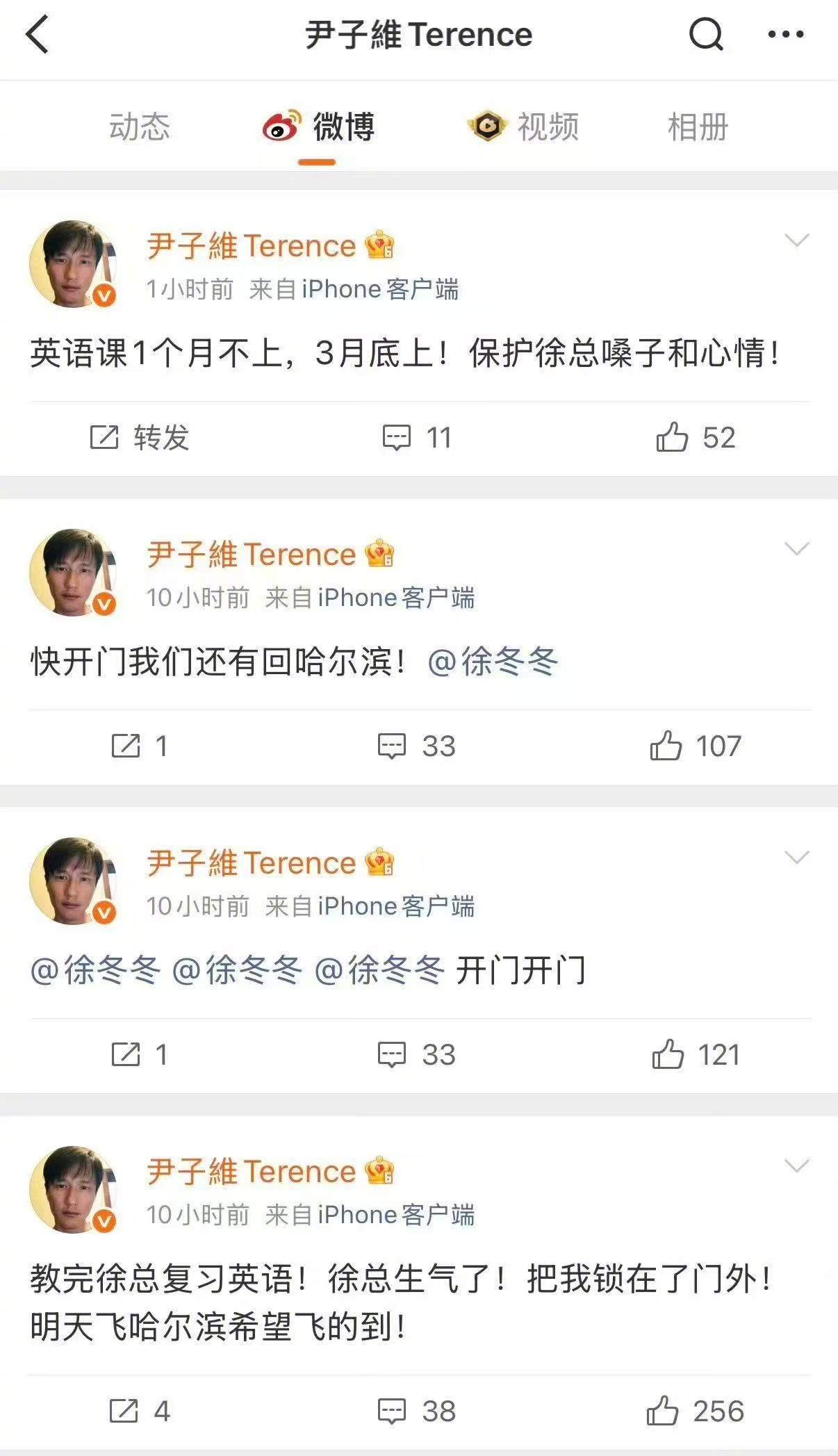 尹子维和徐冬冬争执原因有点甜又有点好笑!尹子维徐冬冬因学英语起争执,徐冬冬吐槽教