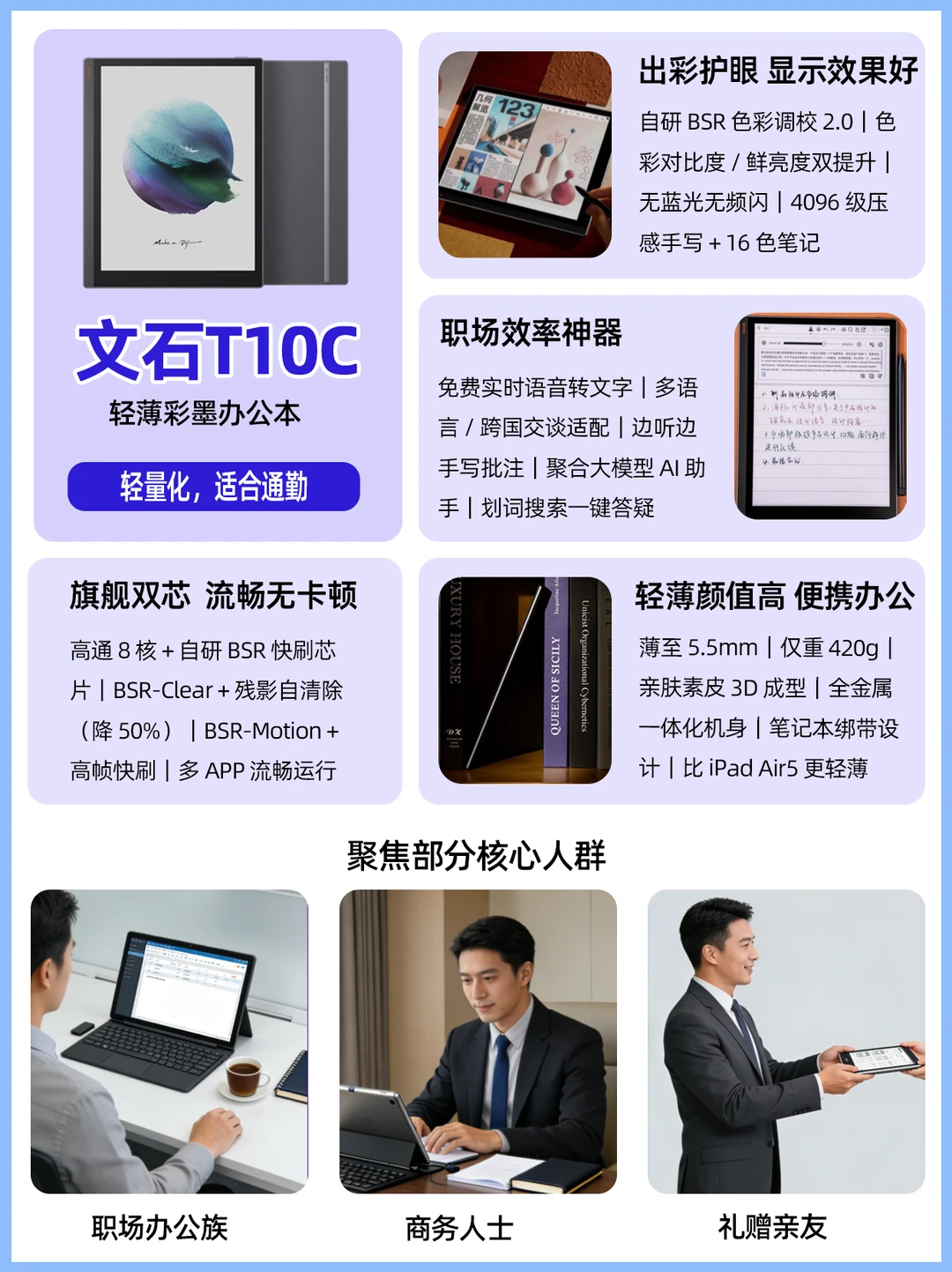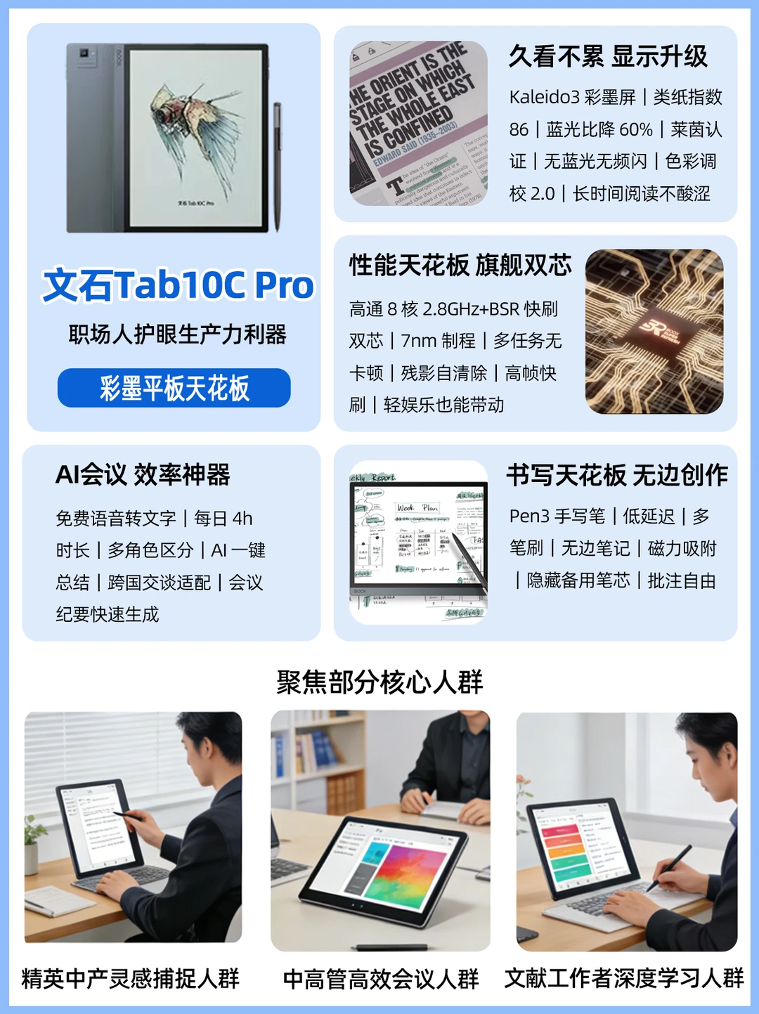 ▫Tab 10C Pro:职场精英 / 医考 / 法考党,想护眼 + 高效 + 便携兼顾,多场景使用