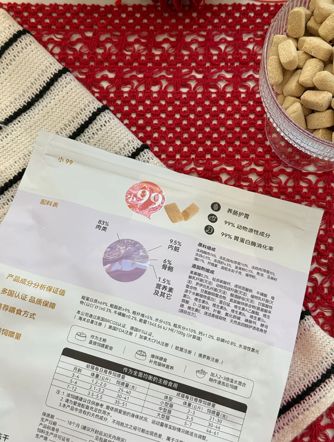 家里总有几只 挑嘴猫 玻璃胃 换过好多冻干 要么不爱吃 要么吃完肠胃闹脾气 一直喂小99鸡肉乳鸽冻干 总算稳定下来了 是17年的老牌子了 国内做冻干先创者 自有工厂还有研发团队 央视都报过 给毛孩子吃 我是真的放心 打开就是很纯的肉香 鸡肉+乳鸽的配方 一鸽胜九鸡 我家几只挑食怪都爱吃 这点太难得 里面还有益肠的成分和专利后生元 肠胃稳稳的 便便都很正常 99%消化率是真能打 玻璃胃也扛得住 肉含量高、营养够、猫咪爱吃、肠胃还舒服 多猫家庭真心觉得靠谱 会一直囤下去