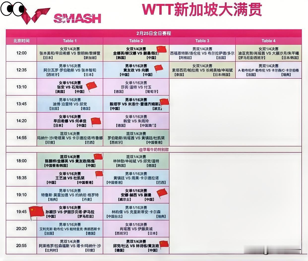🔥重磅! WTT新加坡大满贯战况激烈, 莎莎今晚压轴出战! 2月25日WTT赛事激战正酣,男单女单1/16决赛+双打赛事全面铺开国乒一日10战全力出击! 核心看点:19:45 孙颖莎迎战罗马尼亚选手萨马拉,世界第一冲击16强,绝对不能错过! 下午何卓佳率先登场,与日本选手展开“抗日”对决,精彩程度拉满! 国乒阵容全线铺开,赛程紧密,每一场都是硬仗! 锁定CCTV5/5+、央视频、咪咕体育,为乒乓健儿加油助威! 你觉得谁能顺利晋级? 快来评论区预测比分!🏓🔥国乒新加坡