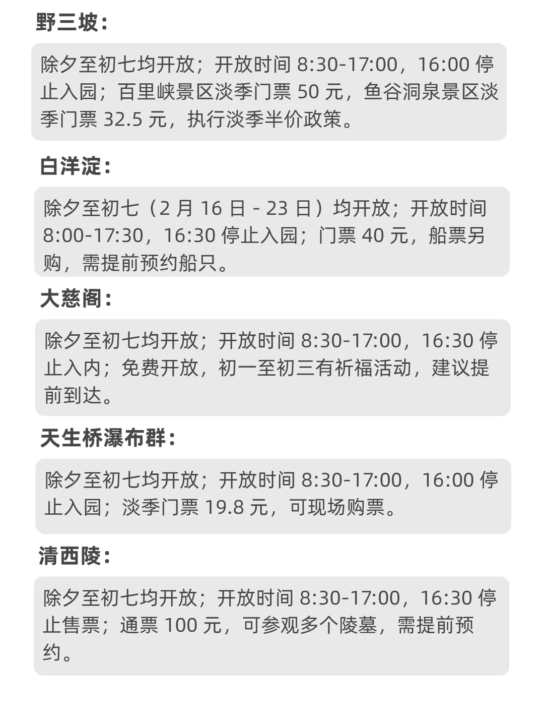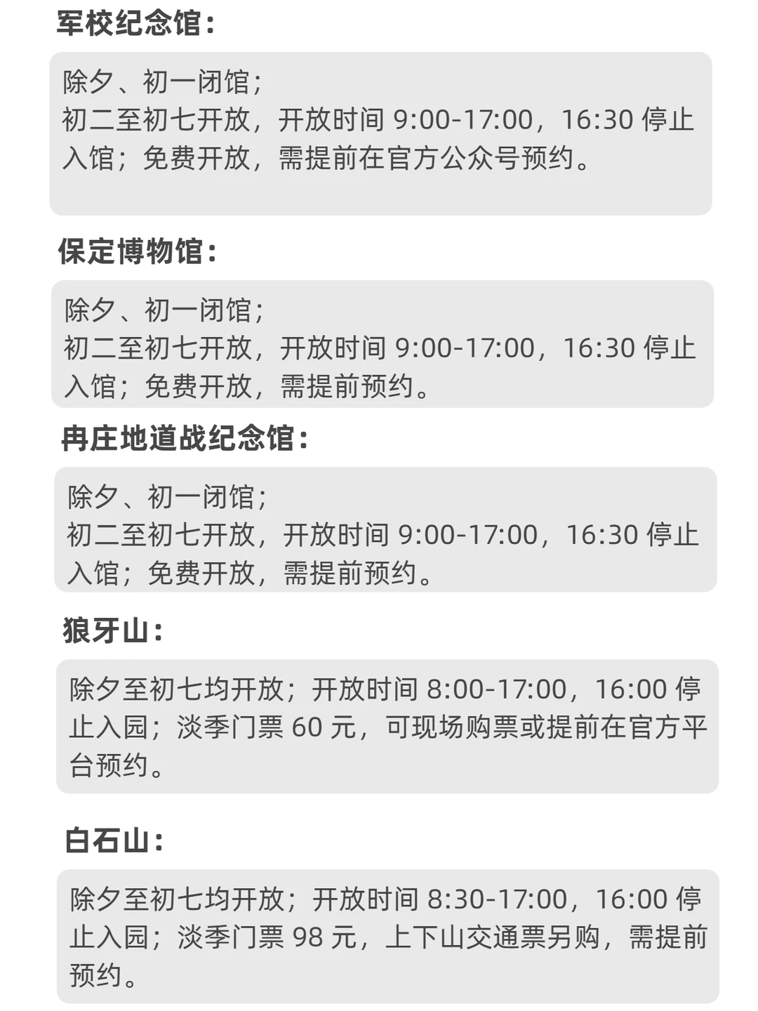 2026年保定春节假期(2月16日除夕至2月23日初七)主要景区开放时间安排如图所见,来保定过年吃什么
