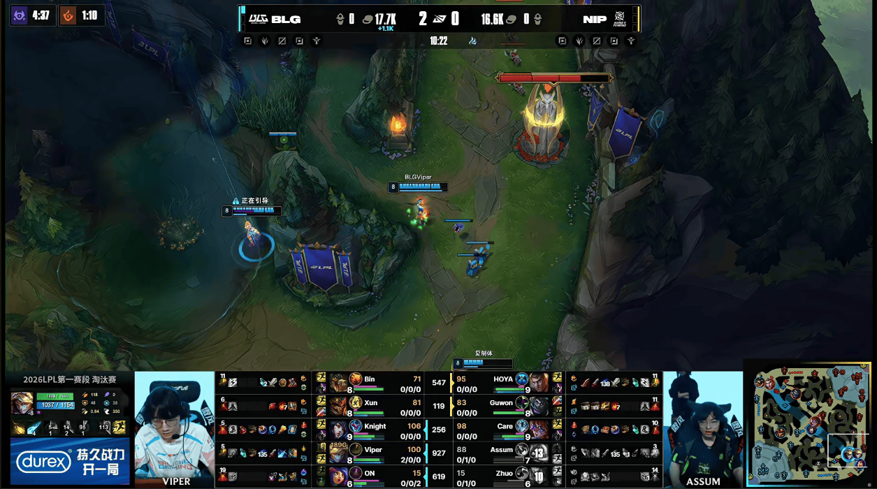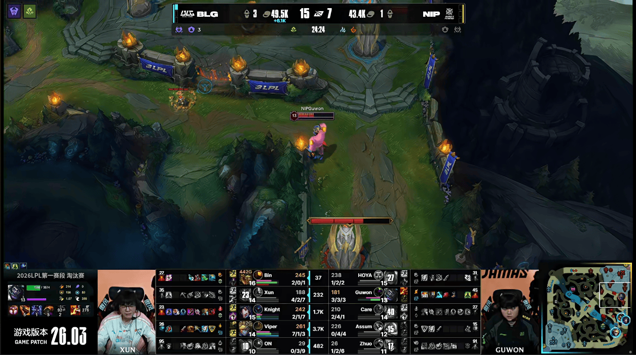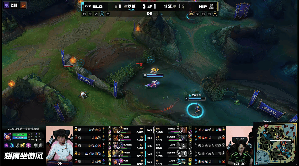 虎扑02月25日讯GAME2:BLG蓝色方;NIP红色方