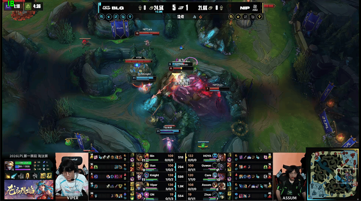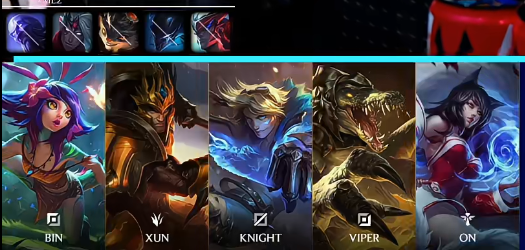 BLG选用:Bin鳄鱼;Xun皇子;Knight阿狸;Viper伊泽瑞尔;ON妮蔻