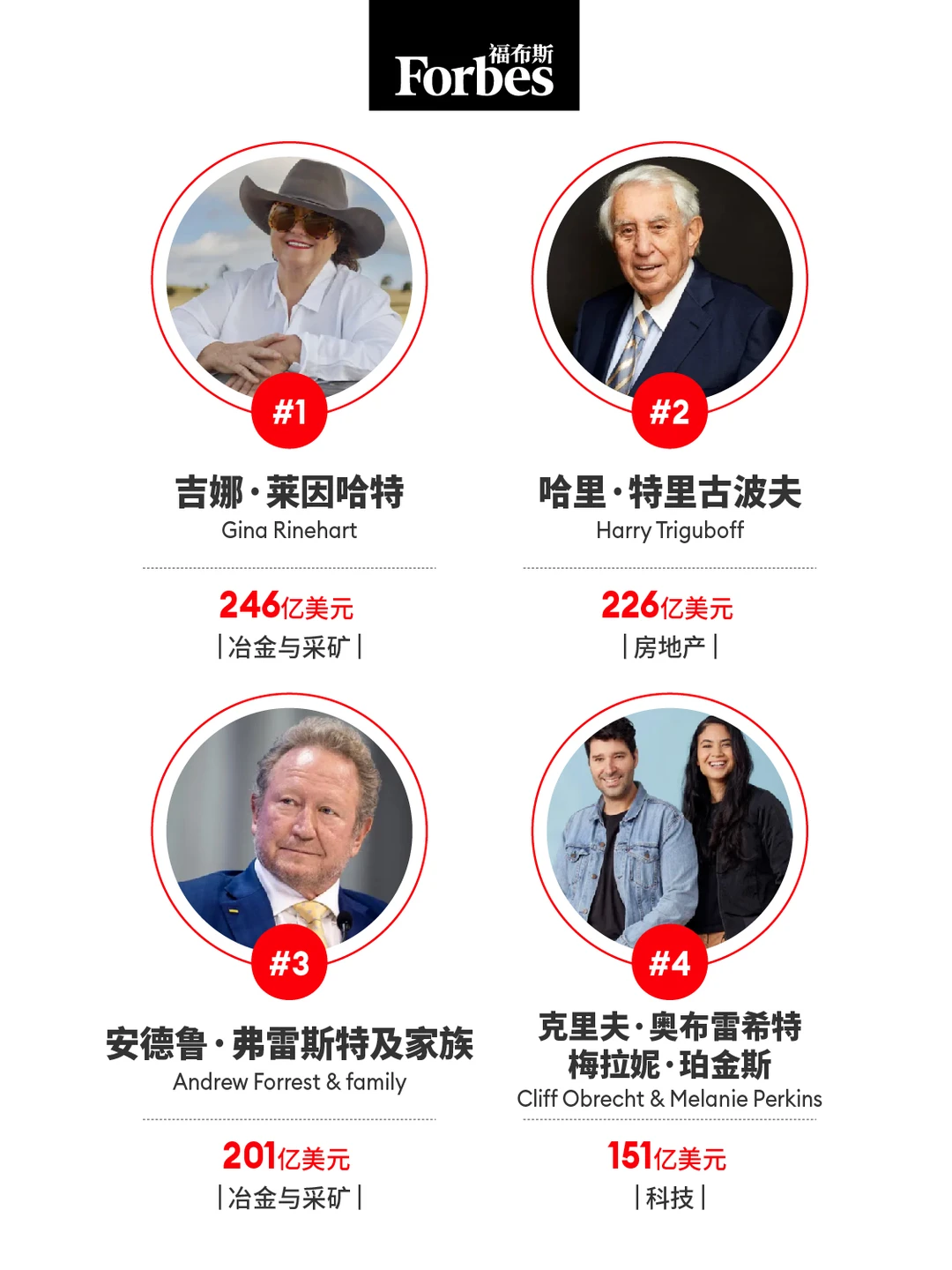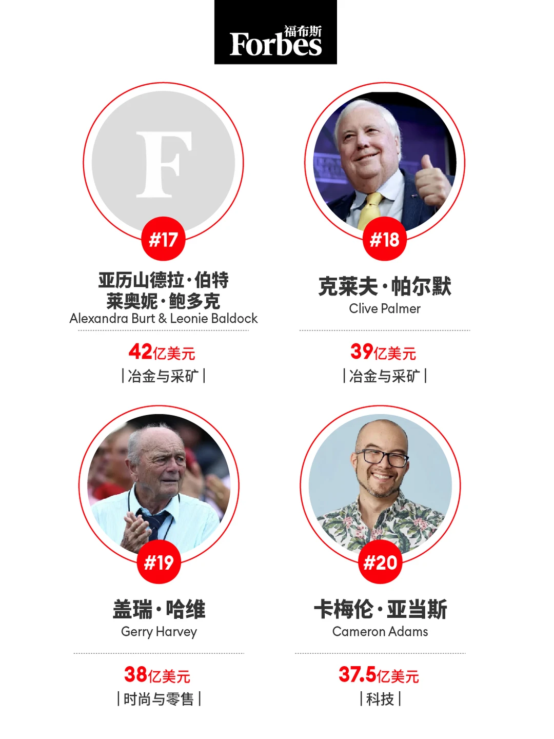 矿业巨头|安德鲁·福雷斯特(Andrew Forrest)排名升至第三,资产增加40亿美元达201亿美元