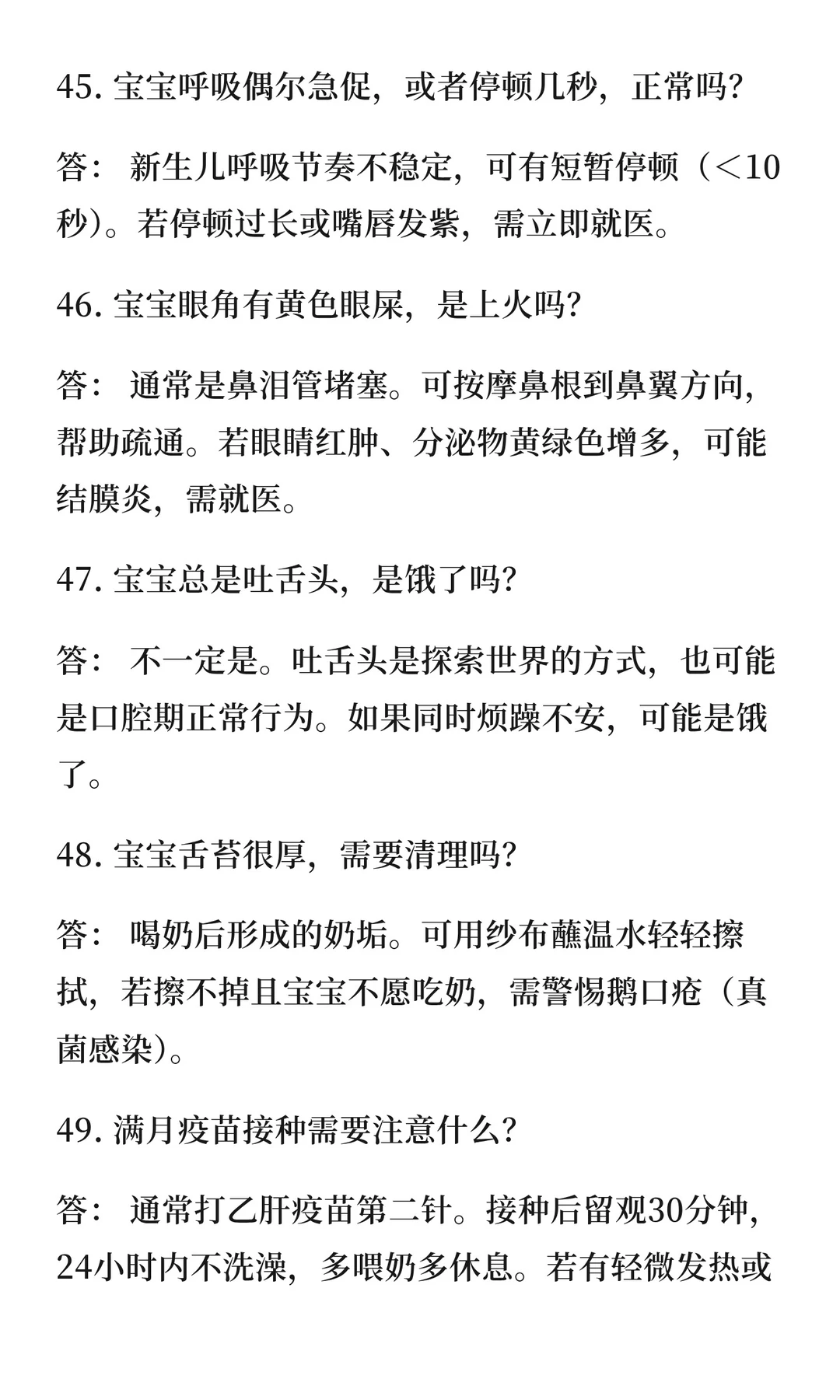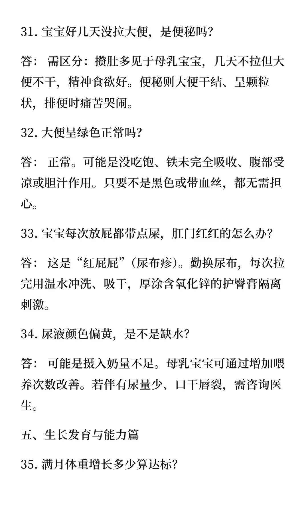 满月体检高频问答:喂养、睡眠、皮肤护理、大便、生长发育、疾病表现等常见问题,帮助新手父母从容应对,缓解育儿焦虑,确保宝宝健康成长。