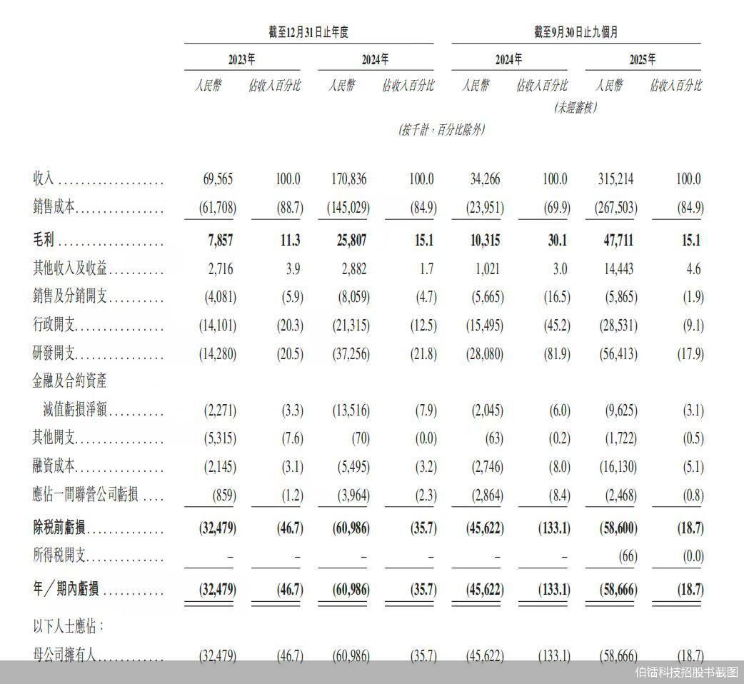 光鲜的增速背后是严重的客户依赖,2025年前9个月,单一最大客户贡献了高达65%的营收,前五大客户营收占比97.7%。伯镭科技选择自主矿车品牌覆盖市场,通过产品结构升级推动平均售价上涨,试图在亏损扩大的窄门中突围。绑定矿业巨头是伯镭科技起飞的推力,也是悬在头顶的达摩克利斯之剑,这场关于自动驾驶商业化落地的实验,正随着招股书的递交进入高潮。