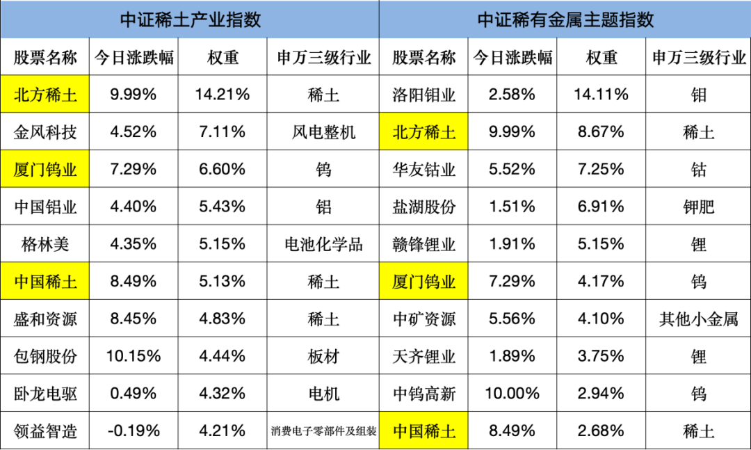 今日提问:除了稀土板块外,今天大涨的还有多个有色金属细分板块。到底该如何区分这些行业?它们都有哪些指数及跟踪ETF?