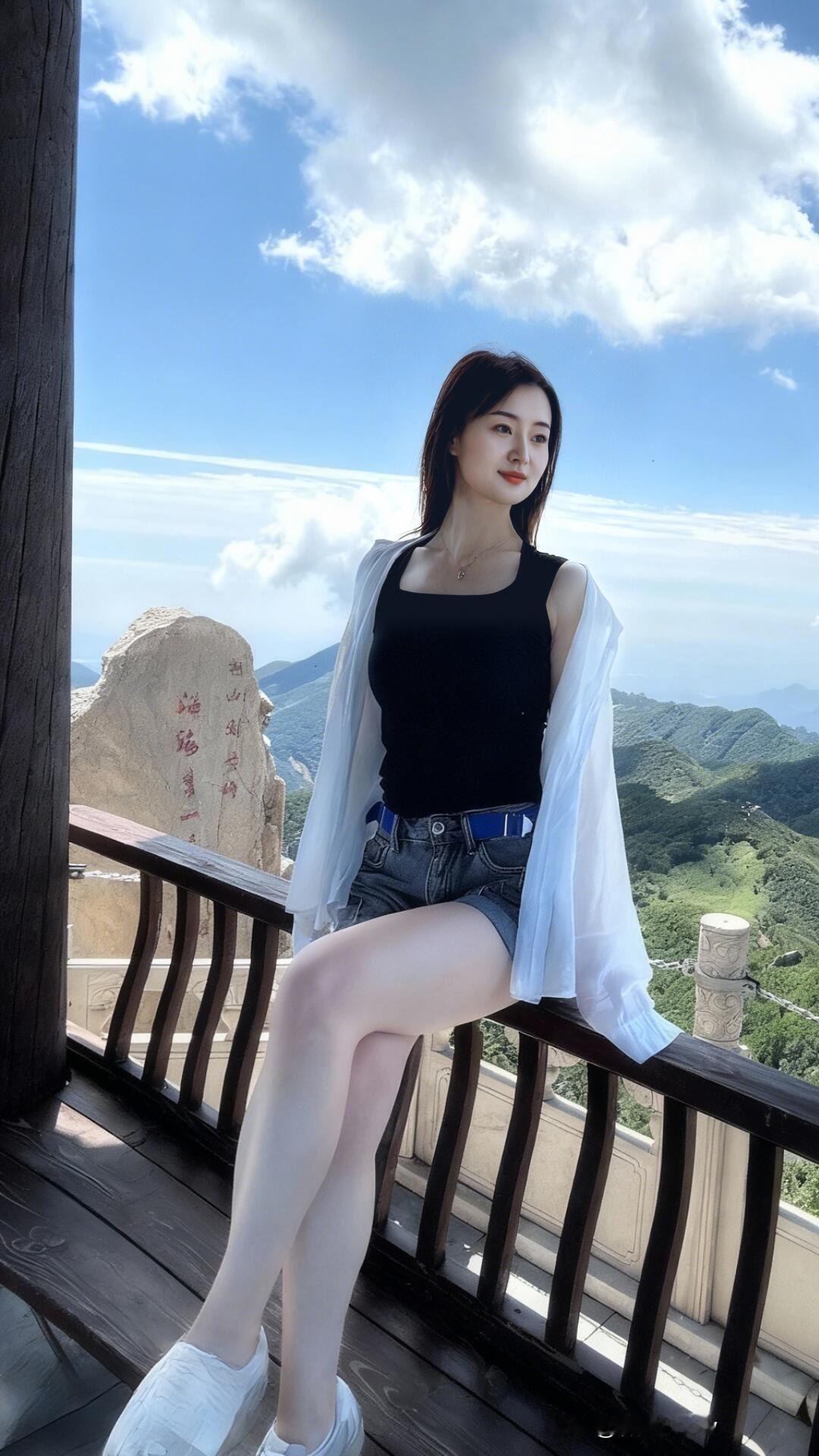 云海之上,仙气缭绕,少女倚栏,美不胜收。大长腿 知性美女穿搭分享 美女们快来分享
