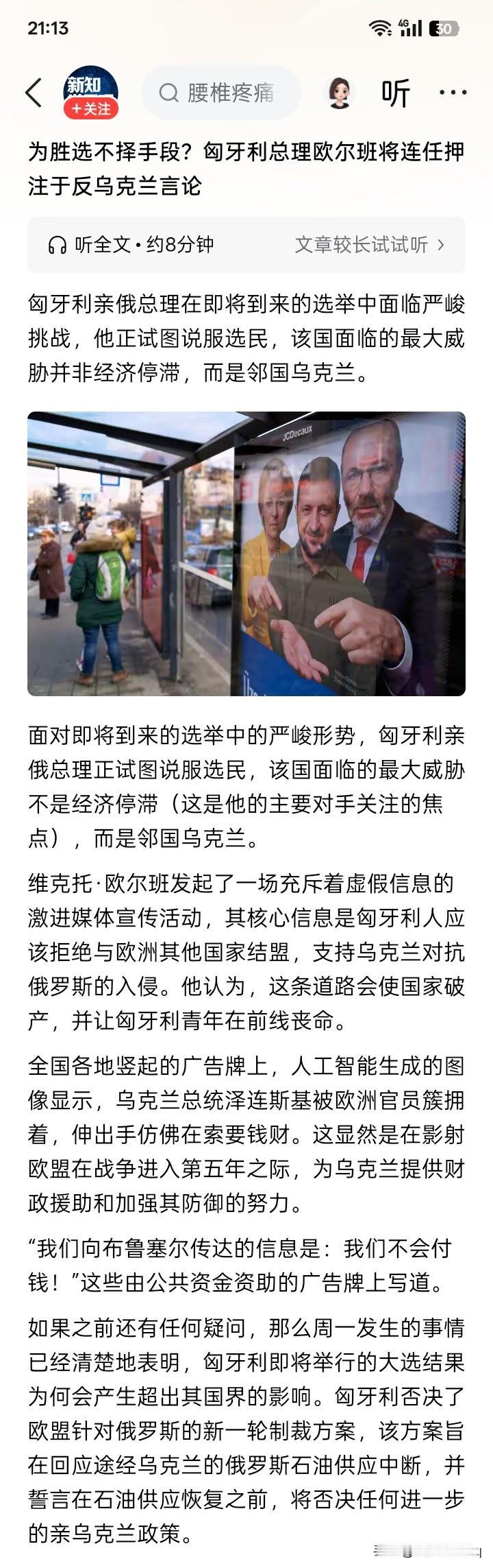 不择手段吗? 为了大选,特别是在民调支持率低于竞选对手的时候,欧尔班真的是到了无所不用其极,不择手段的程度吗? 据网络上的消息传闻,匈牙利已经执政15年的现任总理欧尔班警告选民:“投错票,儿子送乌克兰前线。”如此骇人听闻的宣传,真的是有人相信吗,真的是能为欧尔班赢来几张选票?如果真的有人相信会发生这种情况,估计为此而投票给欧尔班的匈牙利人,至少逻辑思维有些令人出乎意料之外,但这种人估计微不足道,少之又少。 还有消息说,欧尔班声称:匈牙利面临的威胁并非经济停滞,而是乌克兰。似乎乌克兰才是匈牙利的洪水猛兽,但是,这与匈牙利的大选实际上也扯不上什么关系,因为即便是欧尔班大选赢了,他好像也解决不了乌克兰,更灭不了乌克兰。然而,对于这种耸人听闻的看法,不知道匈牙利有多少人赞同。