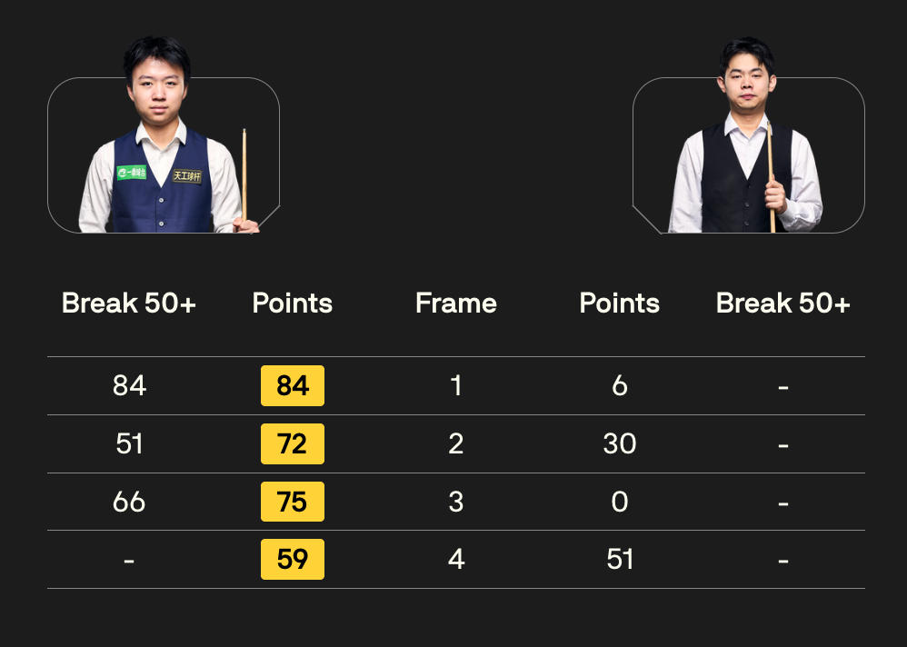 全场比赛,江俊共打出三杆50+(84、51、66)。