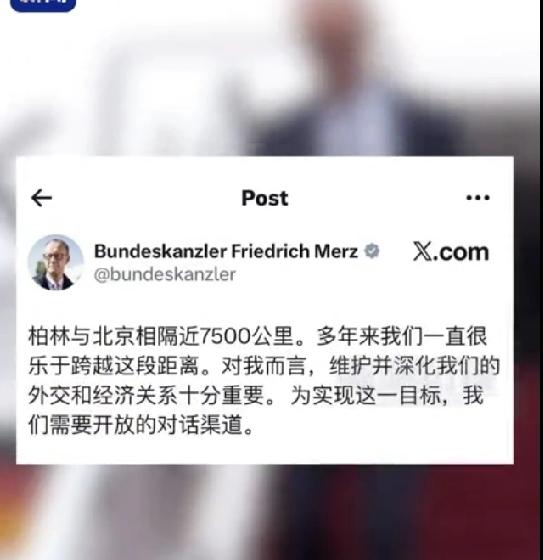 2月25日上午,德国总理默茨抵达北京开启首次访华行程,抵京后就在社交平台X上用中文发帖。他提到柏林与北京相隔近7500公里,多年来乐于跨越距离,还强调维护并深化德中外交和经济关系很重要,需要开放对话渠道。 此次他还率约30家头部企业高管组成的高规格经贸代表团访华。启程前他就向中国人民致新春祝福,感谢中方在春节接待。他强调中德合作意义重大、潜力巨大,愿发展“平衡、可靠、公平”的伙伴关系。中德合作互惠互利,期待这次访问能让双方关系更上一层楼。