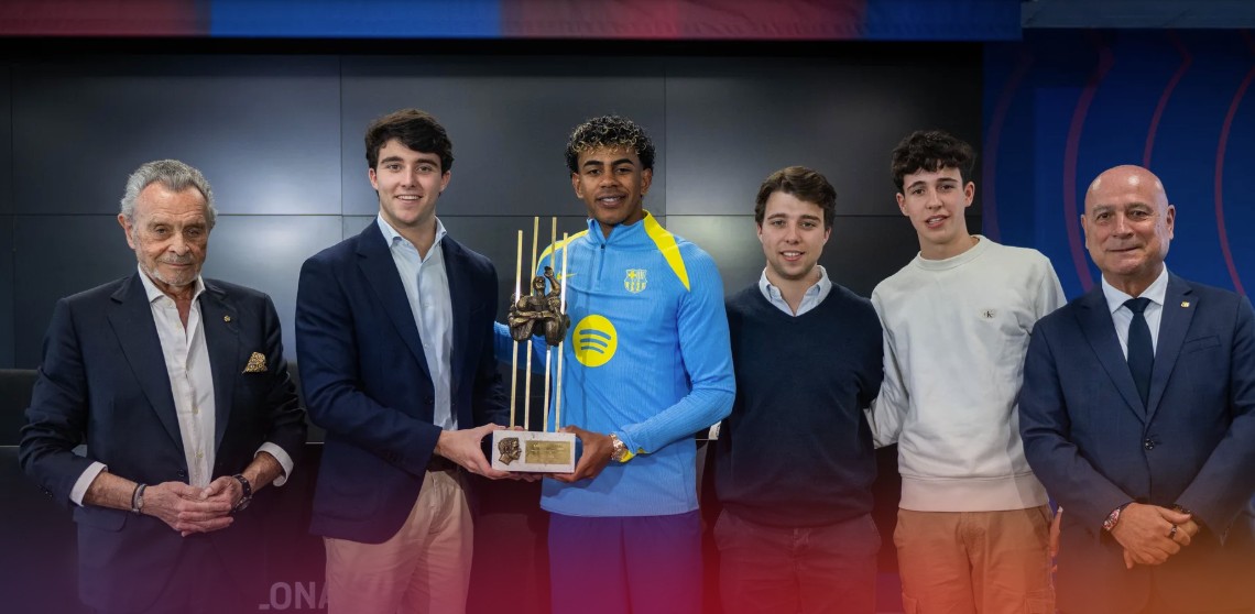 阿尔多-罗维拉奖现已迎来第16届。它由巴萨前高管何塞普-路易斯-罗维拉创立,旨在纪念他于2009年在意外中丧生、年仅37岁的儿子阿尔多。本周三,罗维拉家族的代表亲自为亚马尔颁发了该奖项。