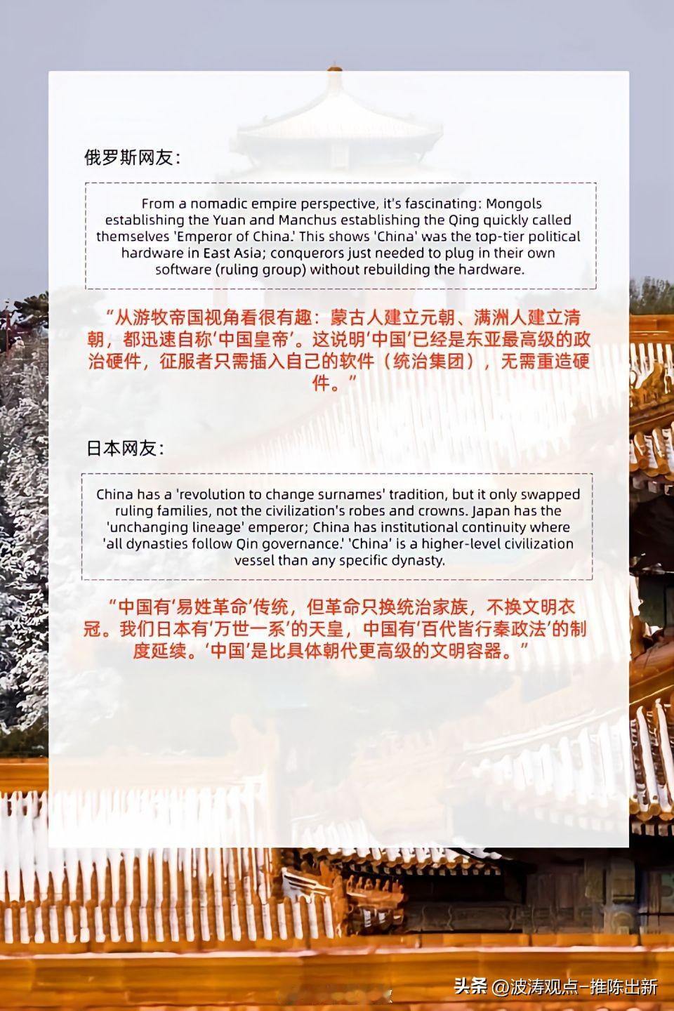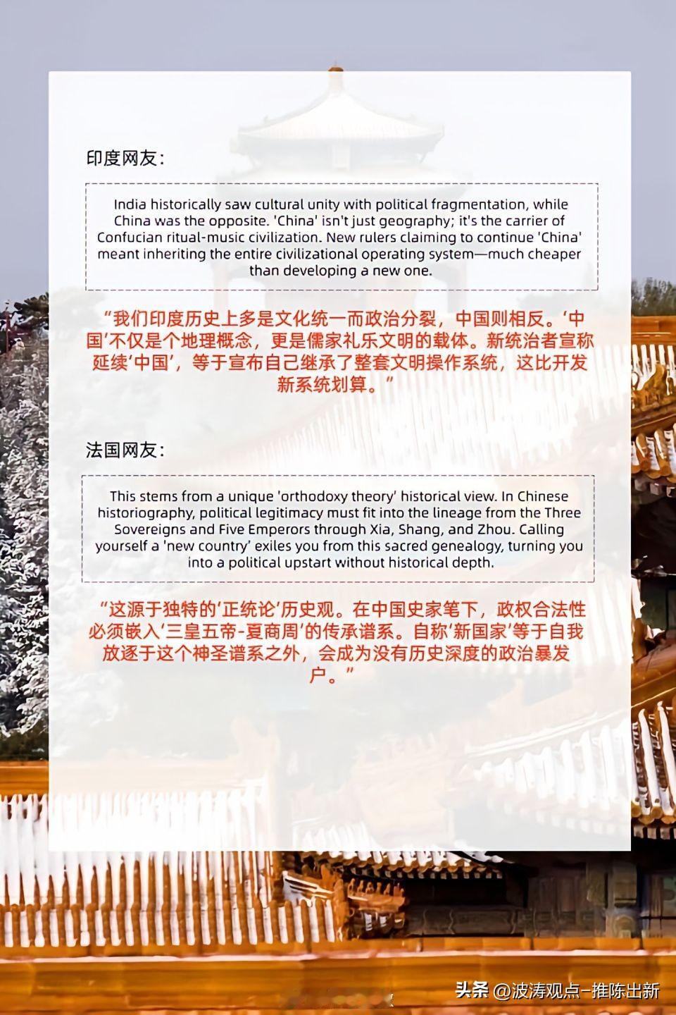 世界上唯一的文明古国,只有中国! 历代王朝皆争“中国正统”,核心有五: 一是筑牢合法性根基,以天命所归确立皇权正当性; 二是凝聚民心,承接华夏文脉,让百姓产生归属感,稳固统治; 三是延续制度,沿用正统典章,减少变革阻力,降低治理成本; 四是占据疆域法理,拥有统一天下、收复故土的道义名分; 五是定格历史地位,确保王朝被后世认可,载入华夏正朔传承。 正统既是政权底气,也是文明延续的关键。