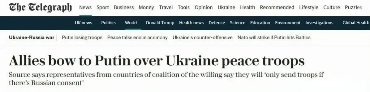 欧洲援乌安全承诺崩盘!无俄同意不派兵 2026年2月25日,英国《每日电讯报》曝出关键消息:欧洲“自愿联盟”对派军援乌大踏步后退,未获俄罗斯同意,绝不向乌克兰派兵。这一表态,直接把乌克兰的安全期待砸得粉碎。 此前波兰总理曾提议派兵进驻乌西,却被泽连斯基拒绝——乌克兰要的是并肩作战的实战支援,而非远离前线的象征性部署。可如今欧洲连派兵都要先看俄方脸色,连最基础的安全兜底都不愿兑现。 欧洲从高调造势到集体退缩,戳破了援乌口号的泡沫:喊口号、供武器可以,真要直面俄罗斯、踩入冲突红线,没有国家愿意赌上自身安危。 即便未来俄乌达成和平协议,失去欧洲安全保障的乌克兰,仍要独自扛住俄方军事压力。这场漫长博弈里,乌克兰终于认清:所谓盟友支援,从来都有不可逾越的上限,能依靠的只有自己。