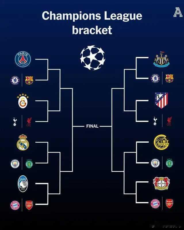 亚特兰大、勒沃库森、加拉塔萨雷、马德里竞技、巴黎圣日耳曼、纽卡斯尔联、皇家马德里、博德闪耀