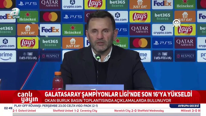 虎扑02月26日讯加拉塔萨雷主教练奥坎-布鲁克评价了球队在都灵与尤文图斯的次回合比赛,这场比赛最终加时赛以3-2结束,加拉塔萨雷也因此晋级欧冠16强。