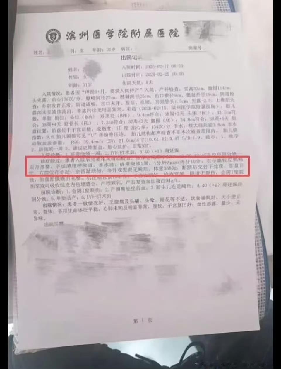 10次产检没查出缺脚趾,医院一句“不归我们查”就完事了? 山东滨州这对夫妻快崩溃了。费那么大劲做试管婴儿,孕期老老实实做了十多次产检,连最贵的四维大排畸都安排了,结果大年初四孩子生下来,右脚只有一根小趾头,剩下四根脚趾全没了。 当爸的在产房外听完直接懵了,一边抱着孩子一边还得哄哭得撕心裂肺的老婆。换谁受得了?折腾这么多年,花了那么多钱,盼来这么个结果。 家属翻出产检报告,发现五张四维照片里,双手和左脚都拍得清清楚楚,唯独右脚一张都没有。这就让人想不通了——是当时就没看,还是看了没当回事? 更让人心寒的是医院的回应:按照指南,双手双足本来就不在系统筛查范围内。换句话说,查不到是正常的,查到了算你运气好。 这话听着是没毛病,医学确实有局限,大排畸平均检出率也就80%-90%,手指脚趾这种小部位最容易漏。但问题是,五张照片唯独缺了右脚,这到底是技术问题还是责任心问题? 家属说要是早知道,可能会考虑不要这个孩子。这话虽然听着扎心,但谁也别站着说话不腰疼。后续矫形手术费用就是个无底洞,这孩子一辈子怎么办? 滨州市卫健委已经介入调查。到底是医院操作有疏漏,还是医学技术真到了极限,得等鉴定结果说话。但有一点可以肯定——产检不是万能保险单,有些坑,只有掉进去的人才知道有多深。