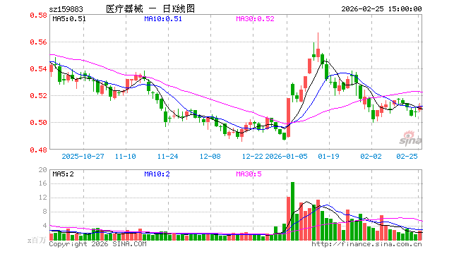 2月25日,医疗器械ETF(159883)涨0.79%,成交额1.33亿元。当日份额增加4200.00万份,最新份额为129.76亿份,近20个交易日份额增加13.50亿份。最新资产净值计算值为66.44亿元。