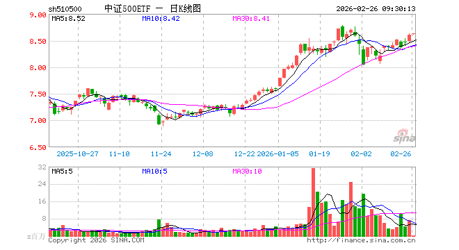 2月26日,中证500ETF(510500)开盘涨0.24%,报8.623元。中证500ETF(510500)重仓股方面,英维克开盘涨1.24%,信维通信跌1.47%,巨人网络涨0.34%,航天电子跌1.49%,中矿资源涨0.04%,中国卫星跌0.79%,先导智能涨0.50%,卧龙电驱涨0.02%,赤峰黄金跌0.51%,兴业银锡涨0.00%。