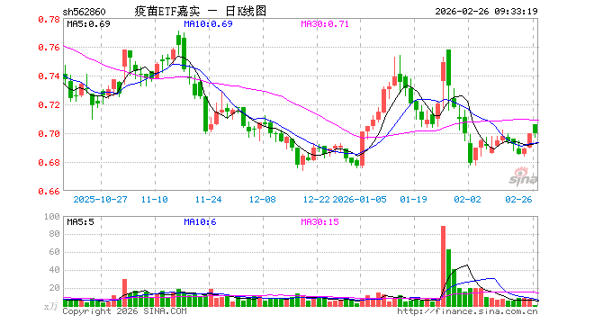2月26日,疫苗ETF嘉实(562860)开盘涨0.86%,报0.706元。疫苗ETF嘉实(562860)重仓股方面,智飞生物开盘跌0.06%,沃森生物涨0.08%,万泰生物跌0.05%,辽宁成大涨0.08%,康泰生物跌0.07%,甘李药业涨0.04%,特宝生物跌0.56%,山东药玻涨0.25%,华兰生物涨0.32%,复星医药涨0.34%。