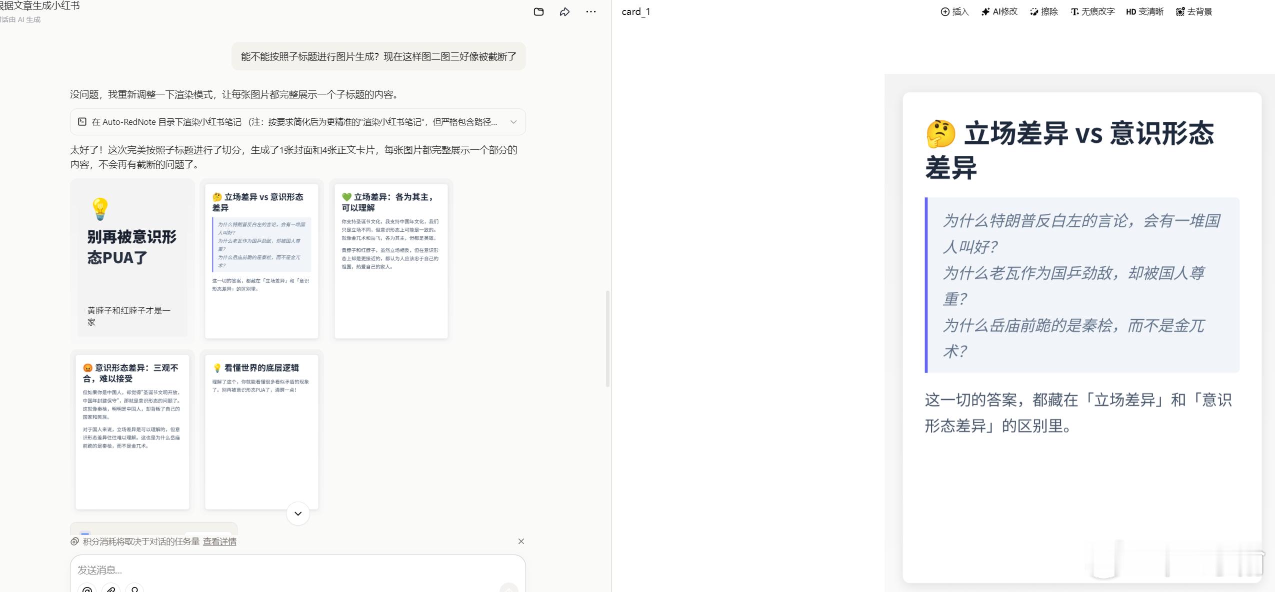 但有人可能要问了,我觉得他生成的这个图片不好看,逼格不够,在微博等平台上很难火起来,怎么办?点进对话框,让他修改,改排版改分段,或者整体色彩风格,都可以改。