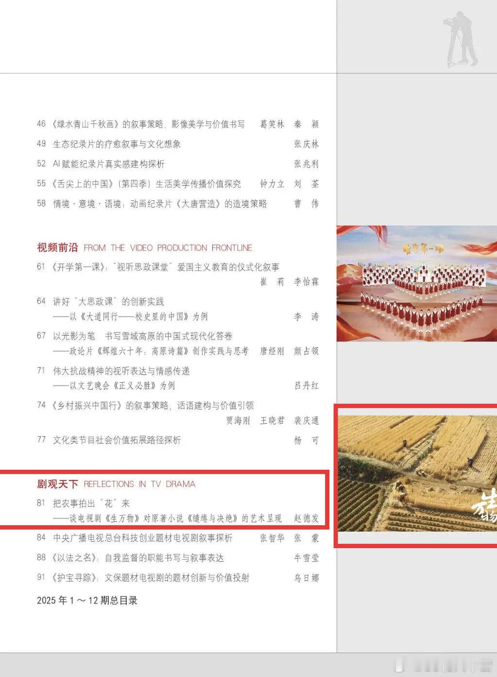 学术期刊《电视研究》刊登论文——把农事拍出“花”来——谈电视剧《生万物》对原著小